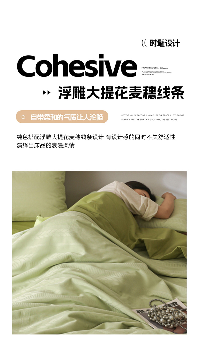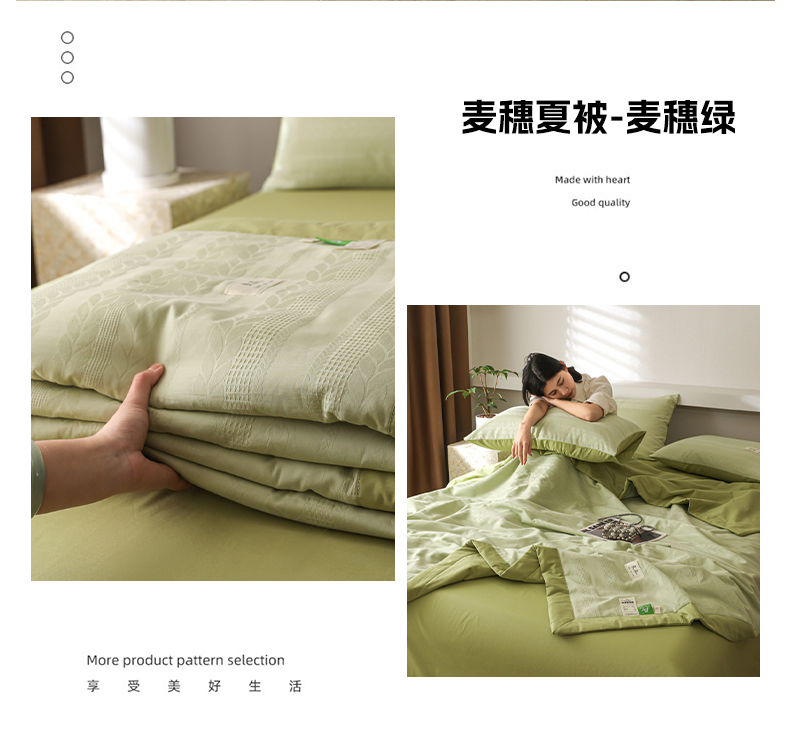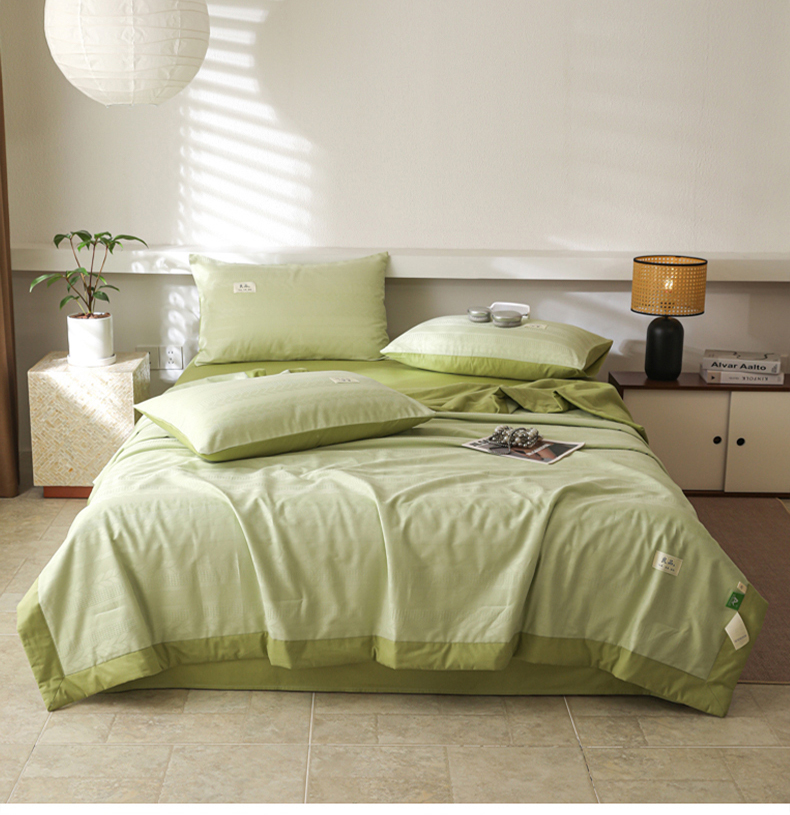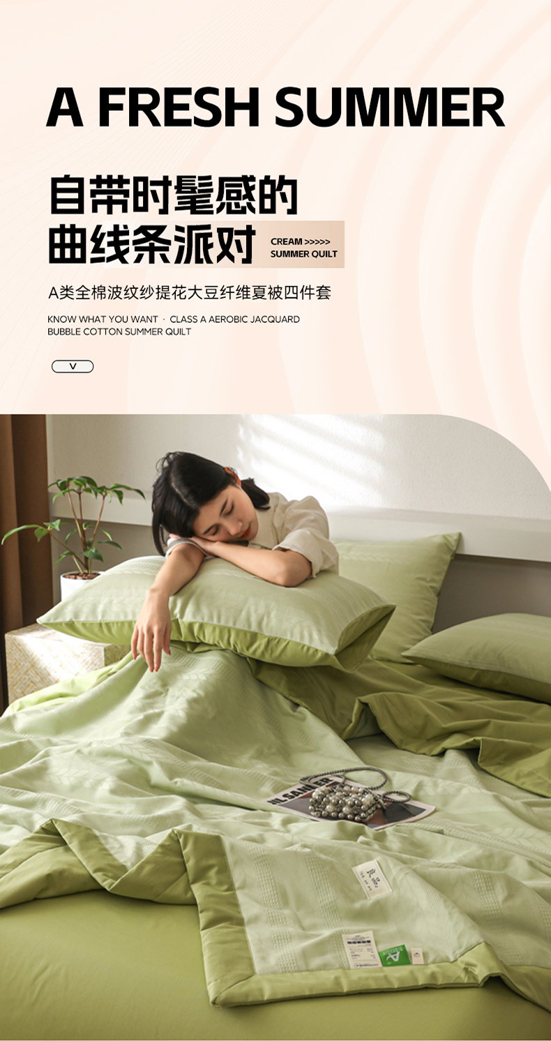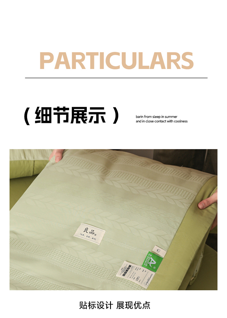 当前位置: 91家纺网 > 商品网购 > 床品套件 > 四件套 > 全棉普通四件套 > 眠博士 2025新款A类全棉波纹纱提花大豆纤维追忆包边夏被四件套 麦穗夏被-麦穗绿