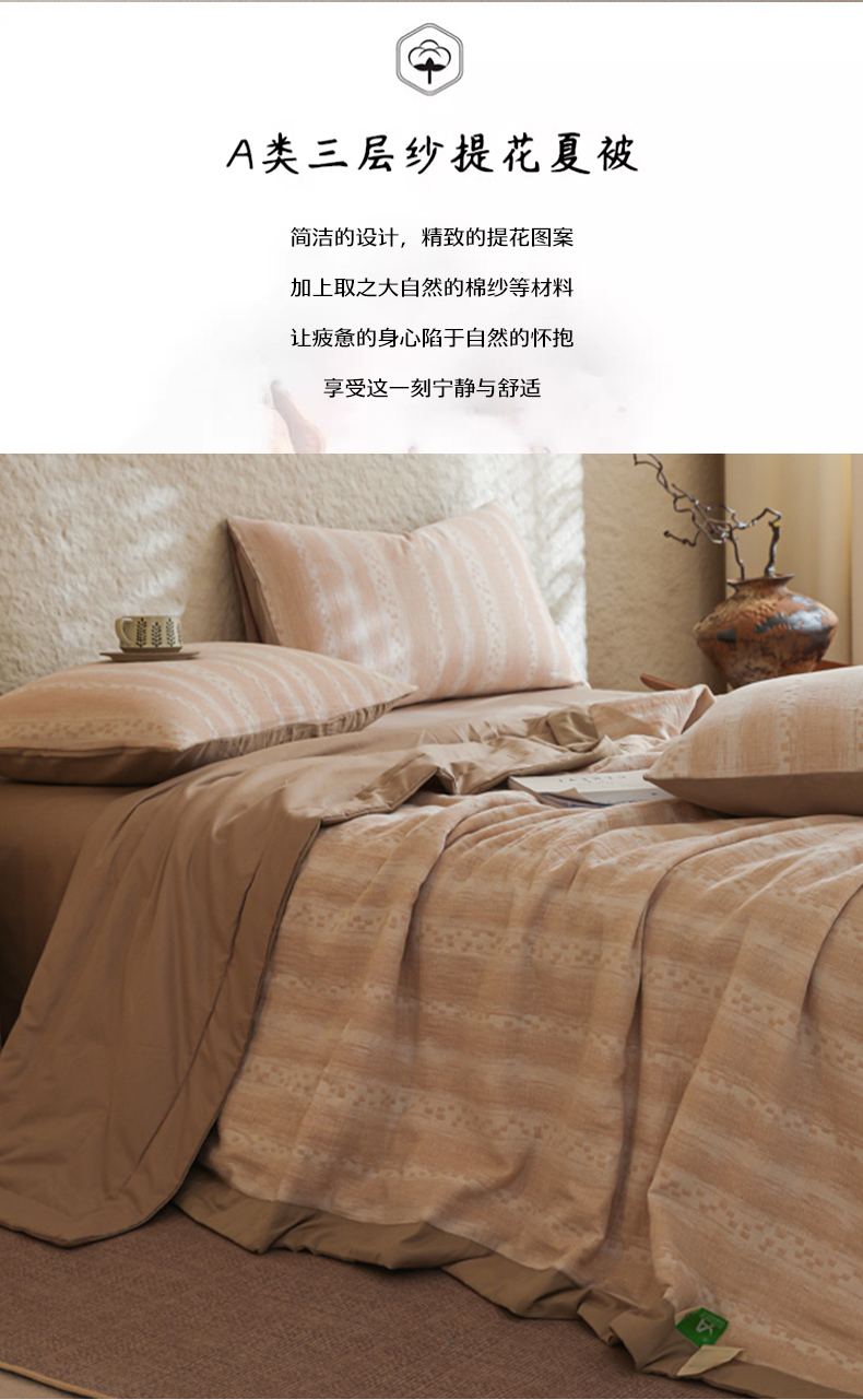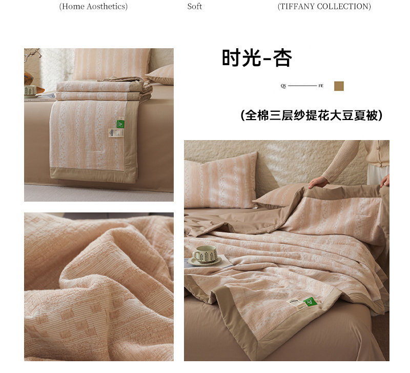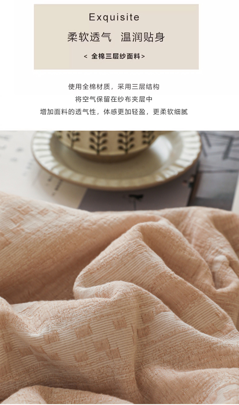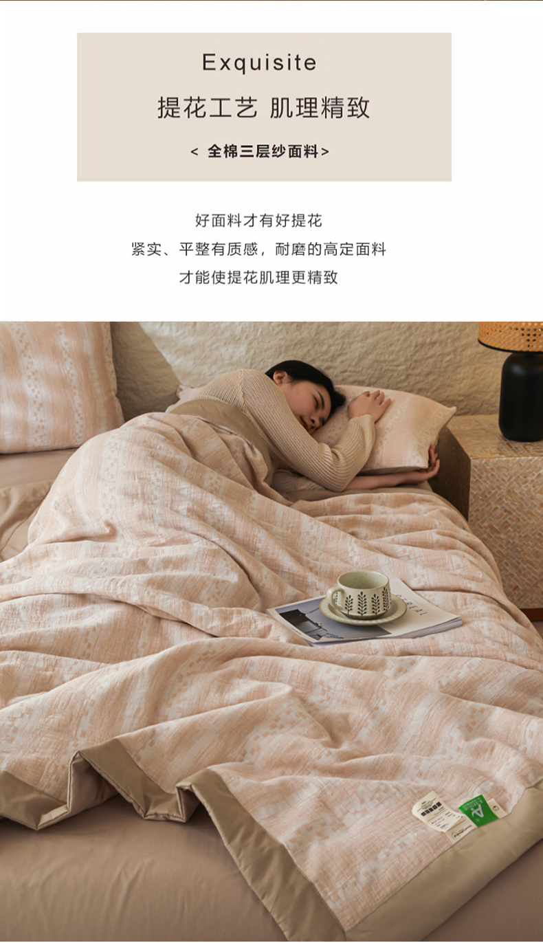 当前位置: 91家纺网 > 商品网购 > 床品套件 > 四件套 > 提花四件套 > 眠博士 2025新款A类全棉包边三层纱提花夏被四件套 包边三层纱夏被-时光-杏