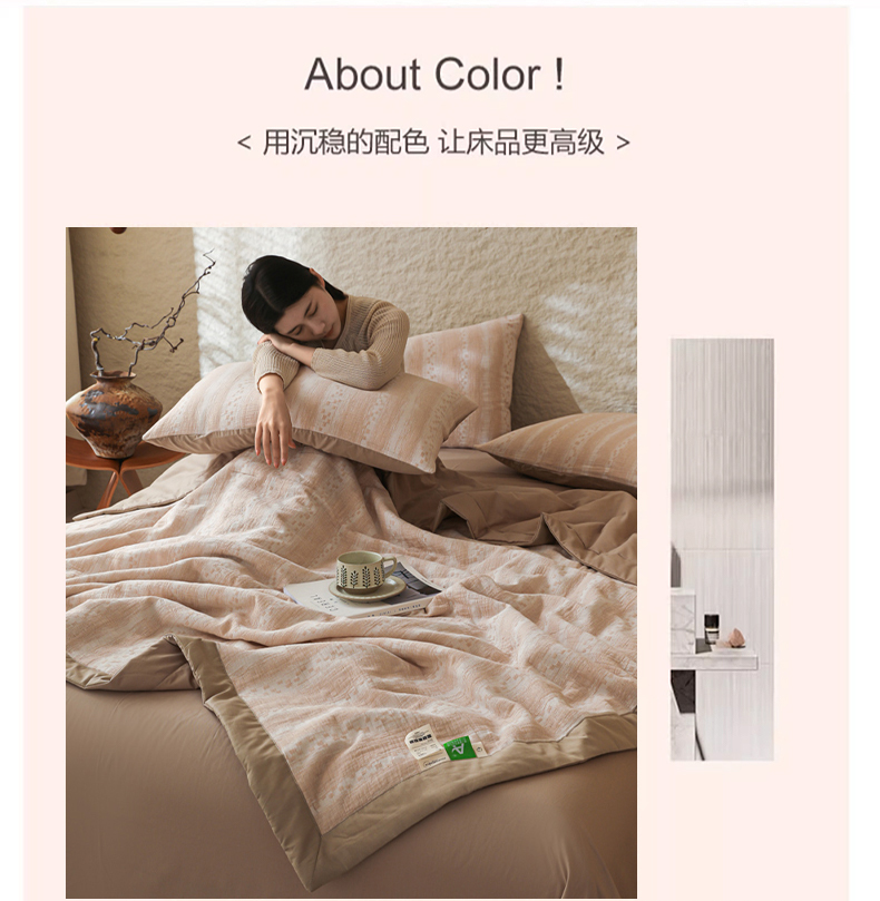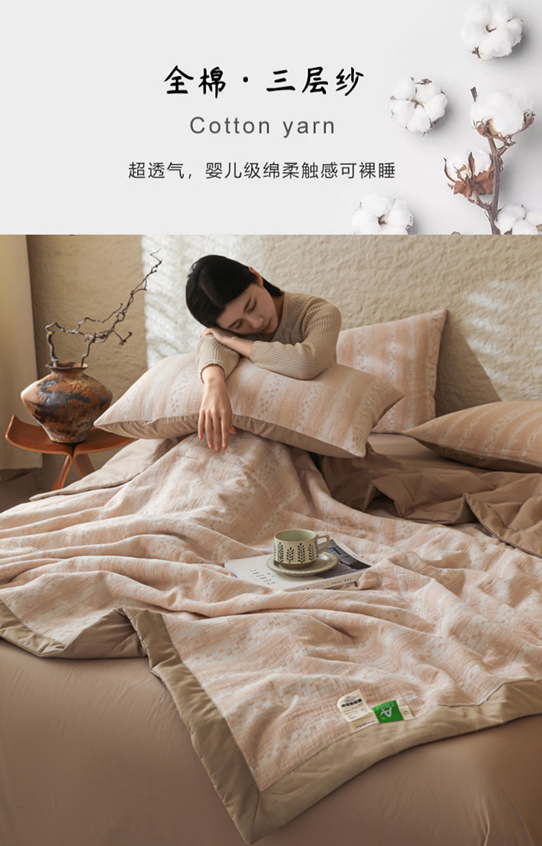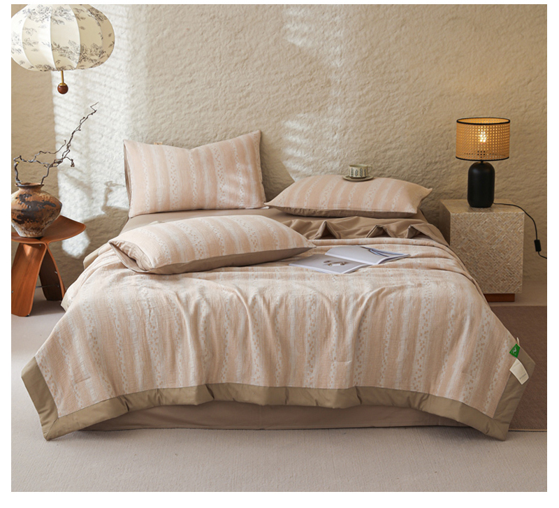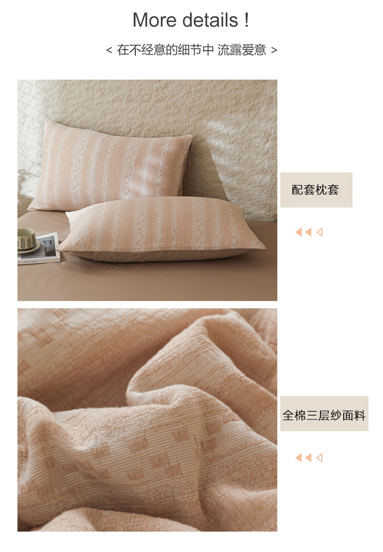 当前位置: 91家纺网 > 商品网购 > 床品套件 > 四件套 > 提花四件套 > 眠博士 2025新款A类全棉包边三层纱提花夏被四件套 包边三层纱夏被-时光-杏