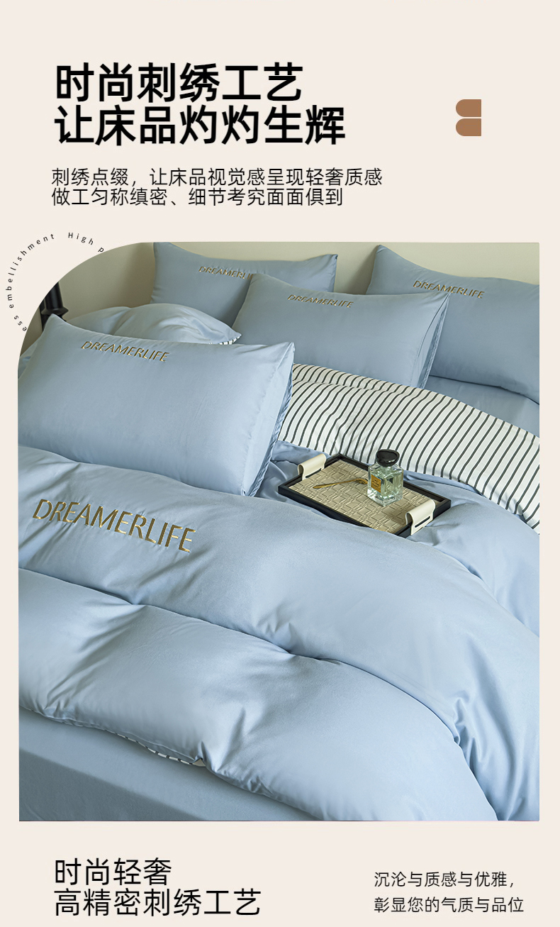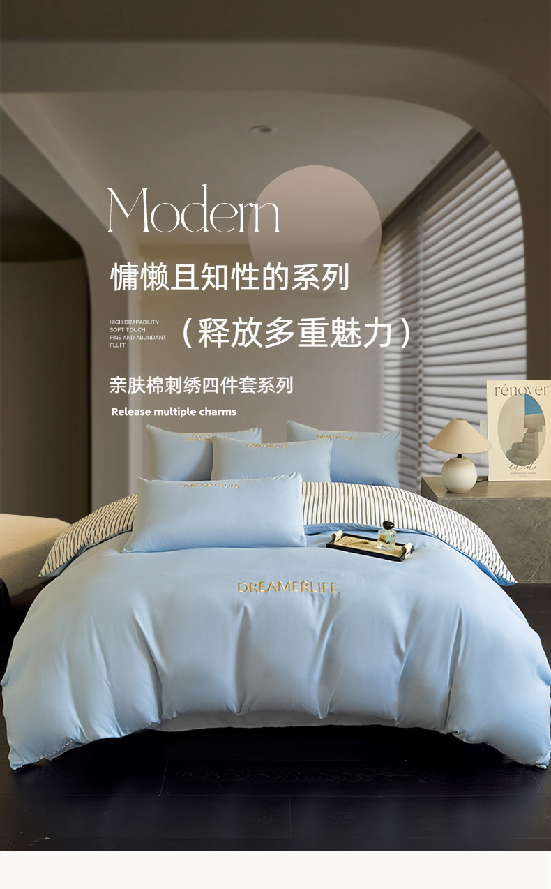 (总)千希家纺 2025新款轻奢简约亲肤棉绣花刺绣四件套-赛尔系列,赛尔-星耀黑,赛尔-蜜桃粉,赛尔-莫尼灰,赛尔-雾霾蓝