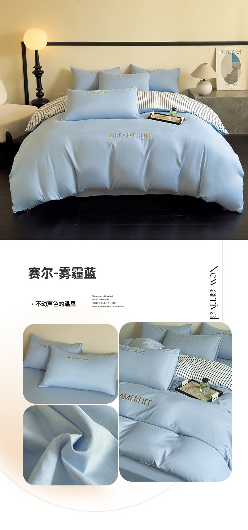 2025新款亲肤棉四件套-赛尔系列 赛尔-雾霾蓝