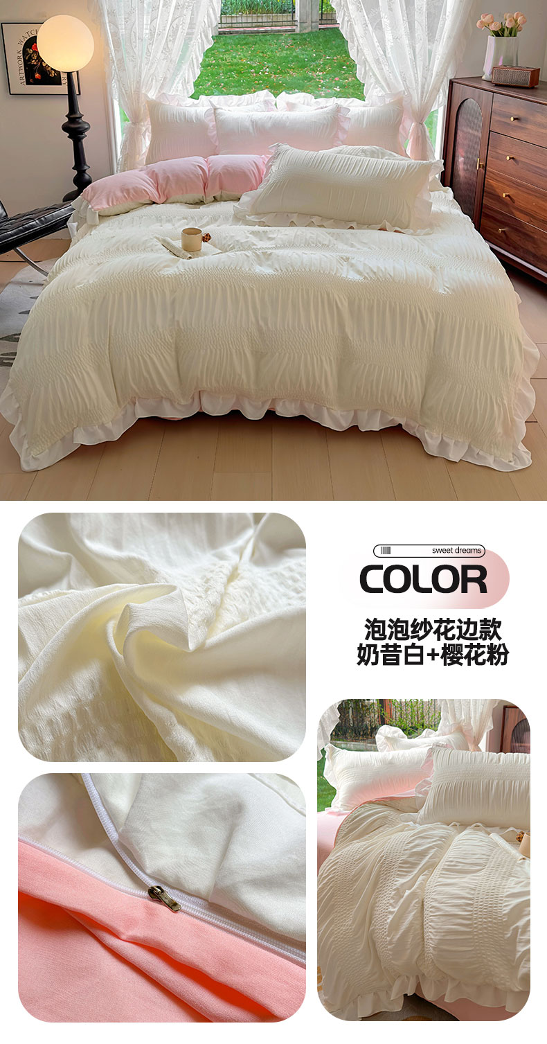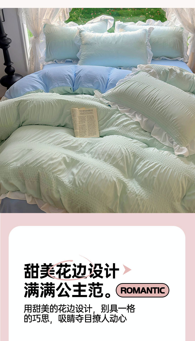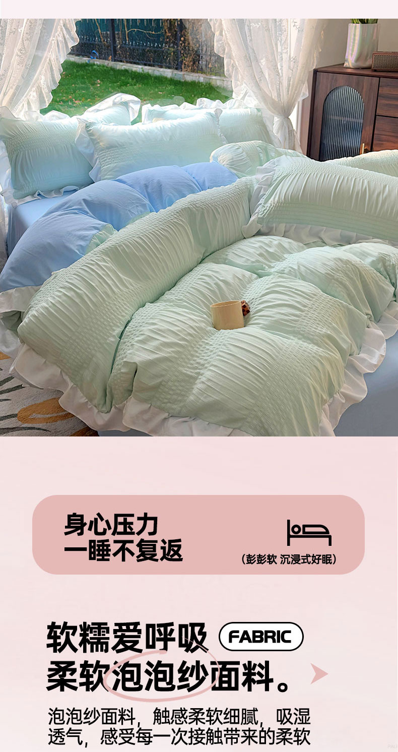 (总)灰鲸2025新款泡泡纱公主风花边款四件套