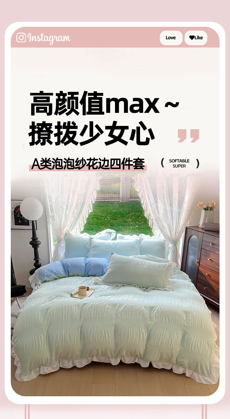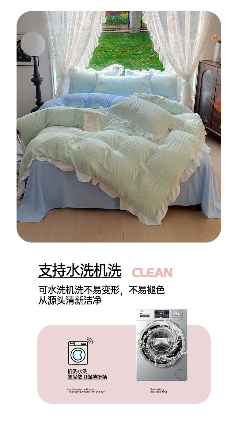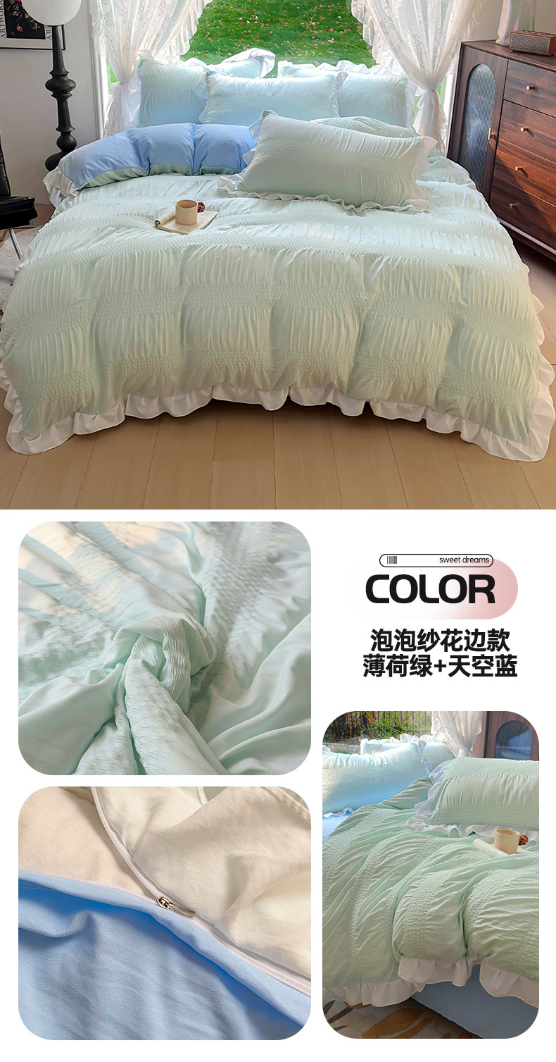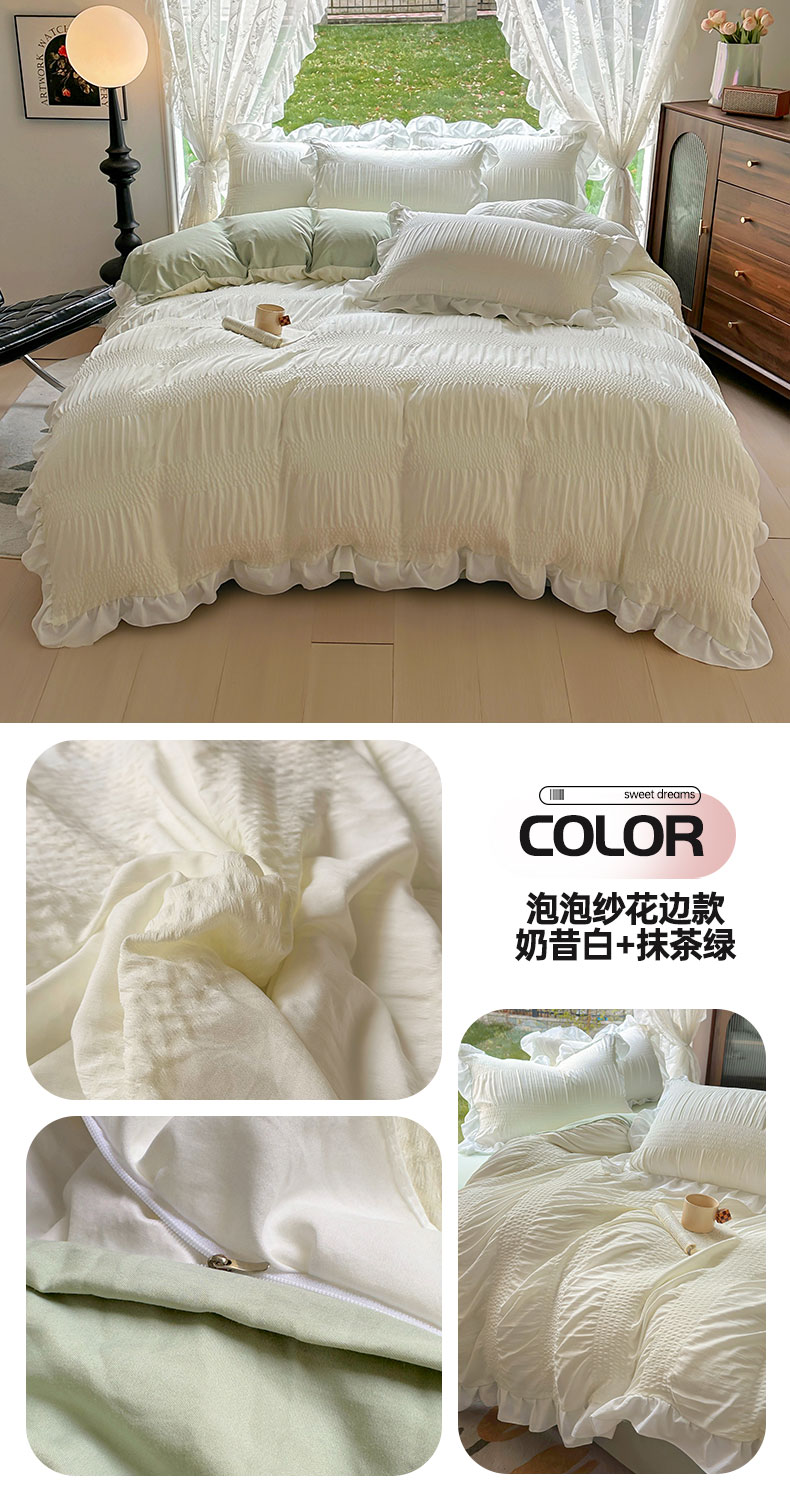(总)灰鲸2025新款泡泡纱公主风花边款四件套