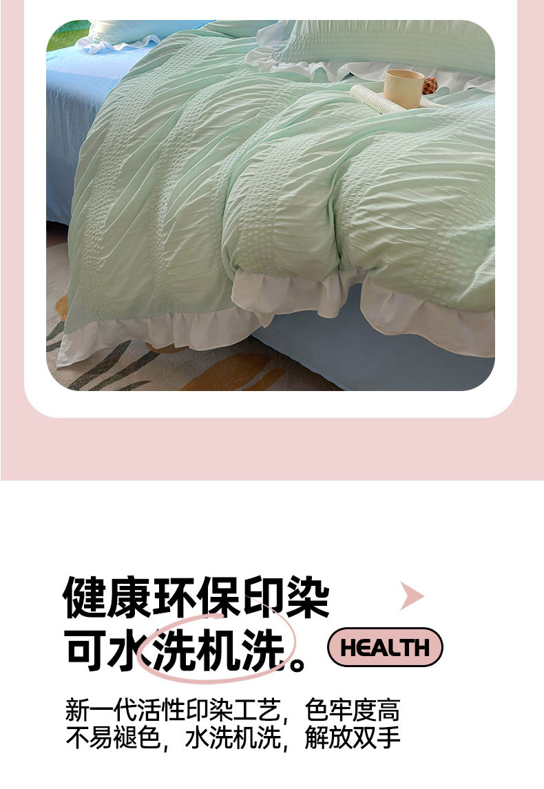商品名称:(总)灰鲸2025新款泡泡纱公主风花边款四件套