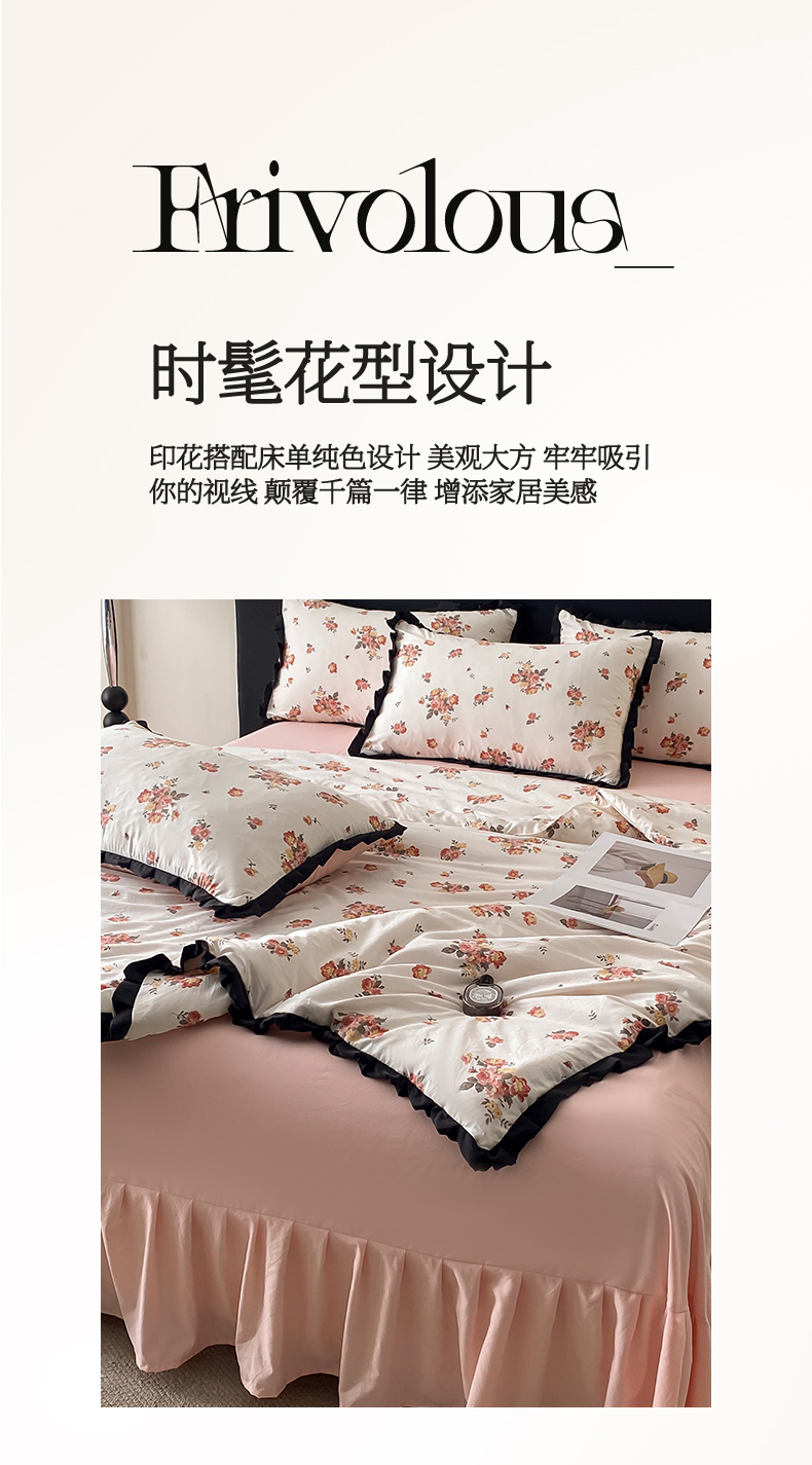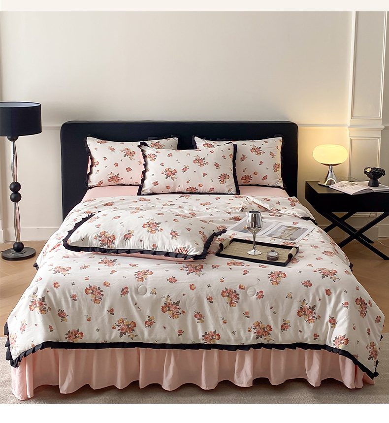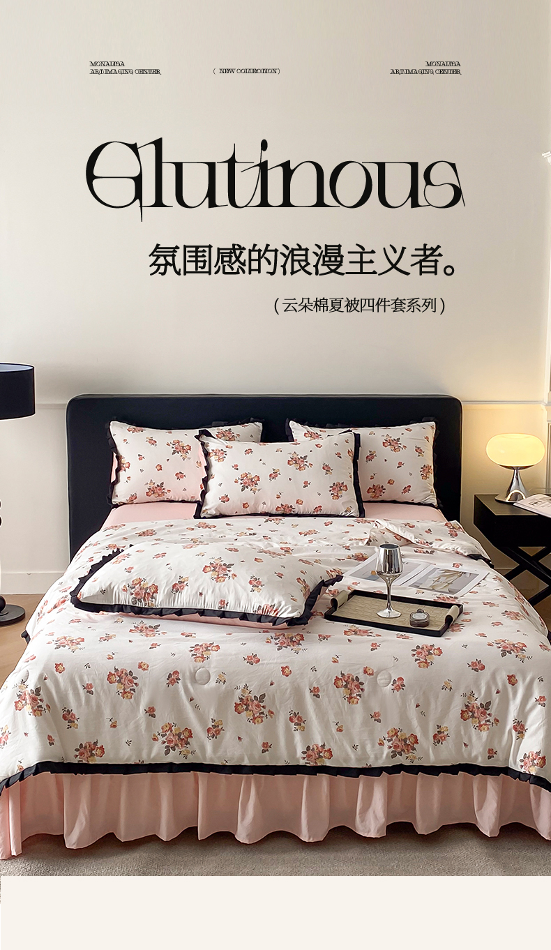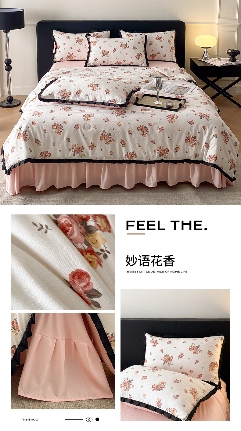 2025新款花边床裙款印花云朵棉夏被四件套水洗棉仿全棉纯棉夏凉被空调被 妙语花香