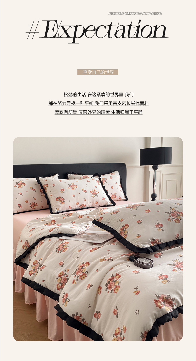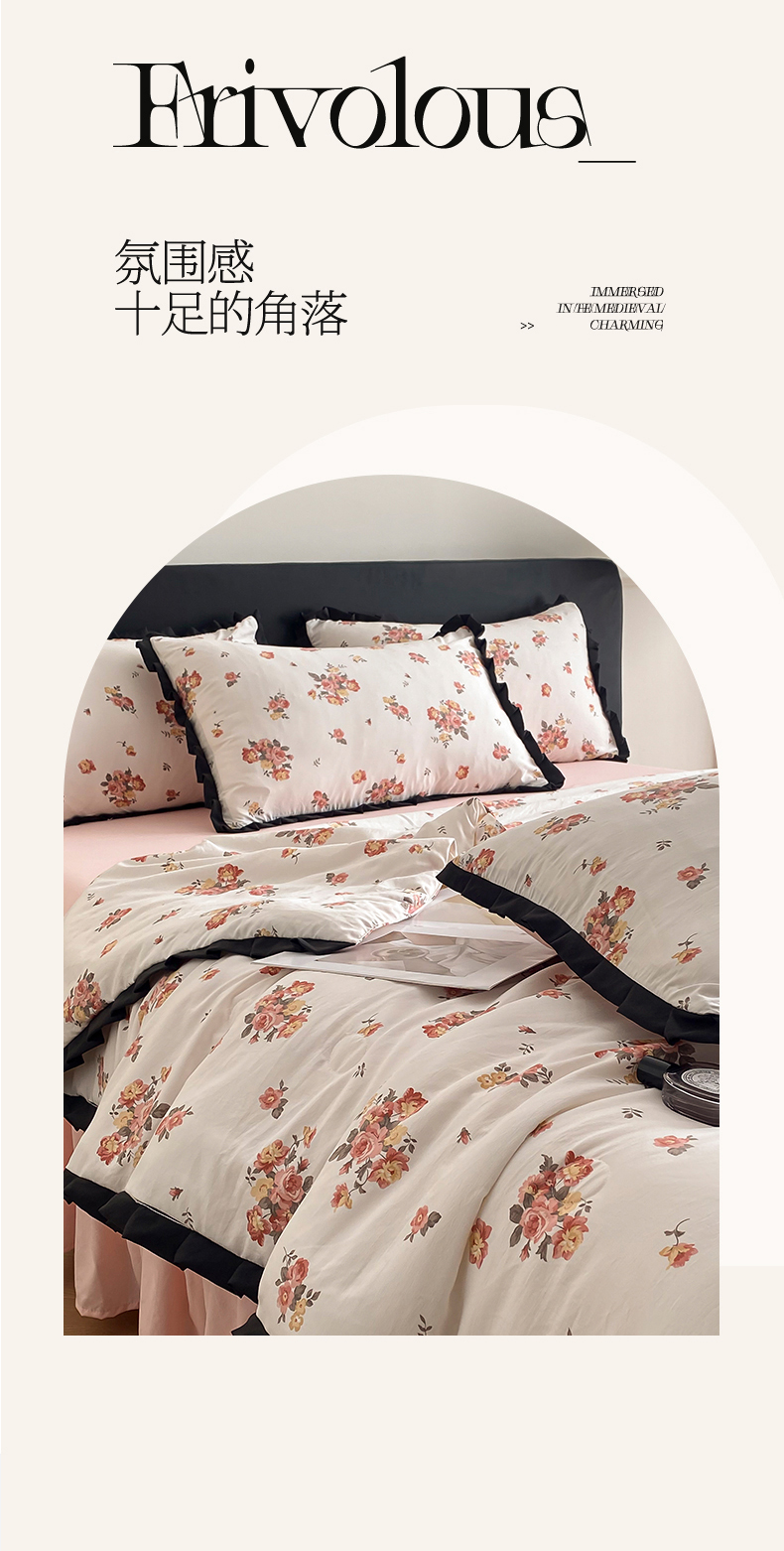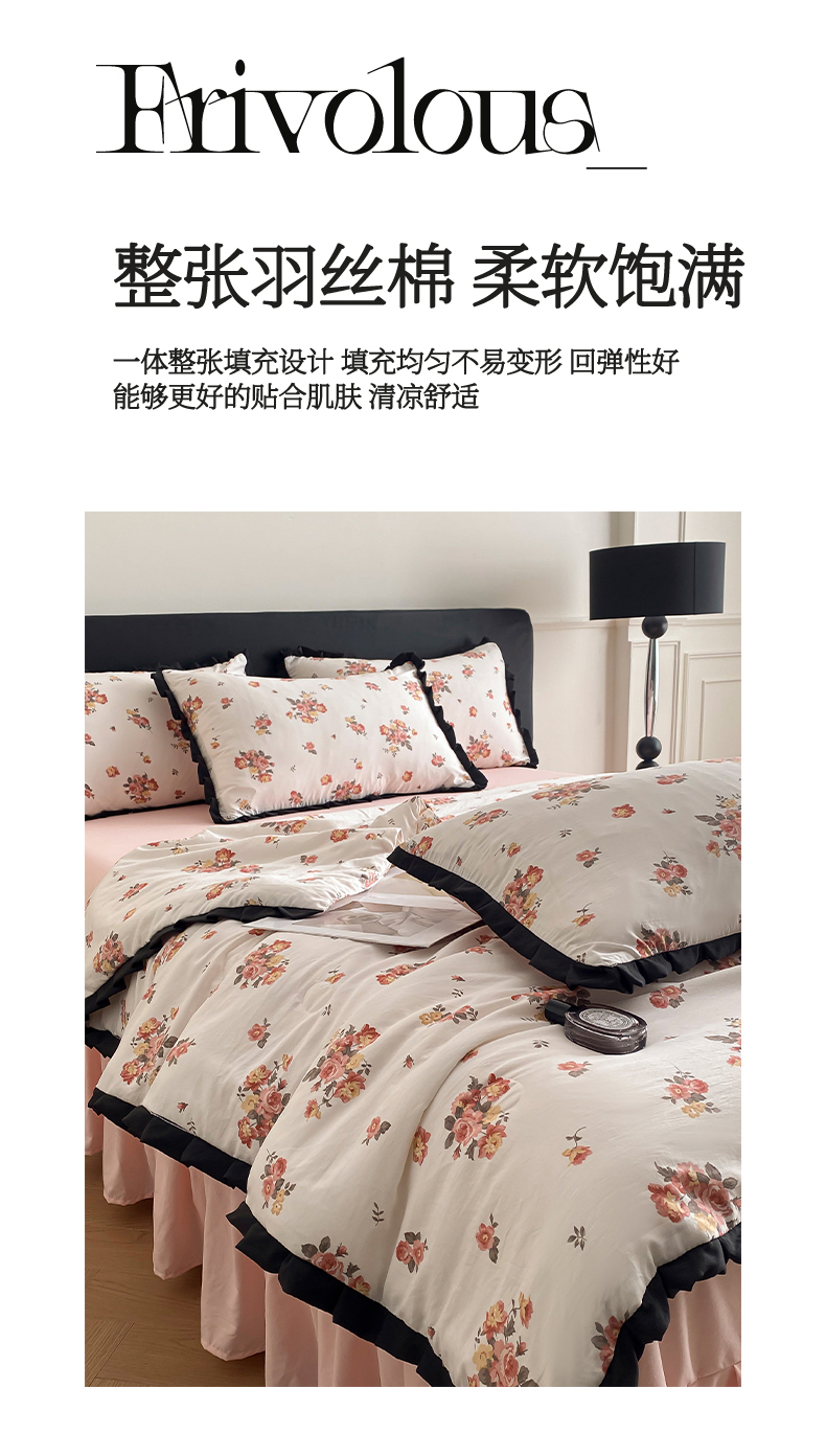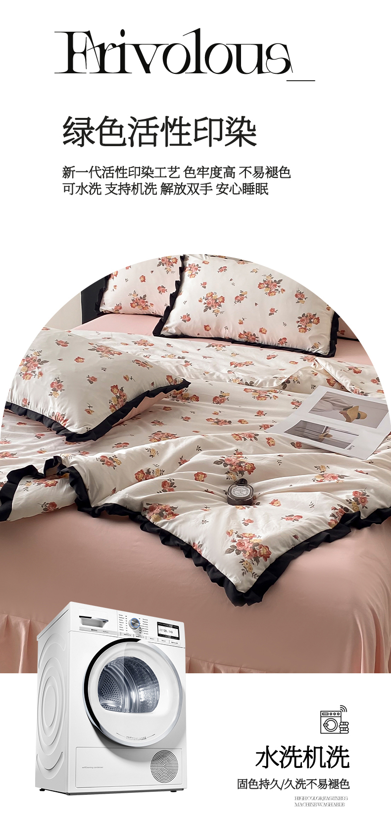 2025新款花边床裙款印花云朵棉夏被四件套水洗棉仿全棉纯棉夏凉被空调被 妙语花香