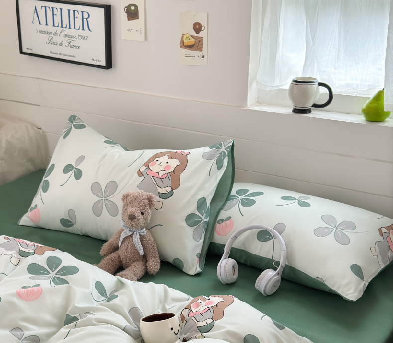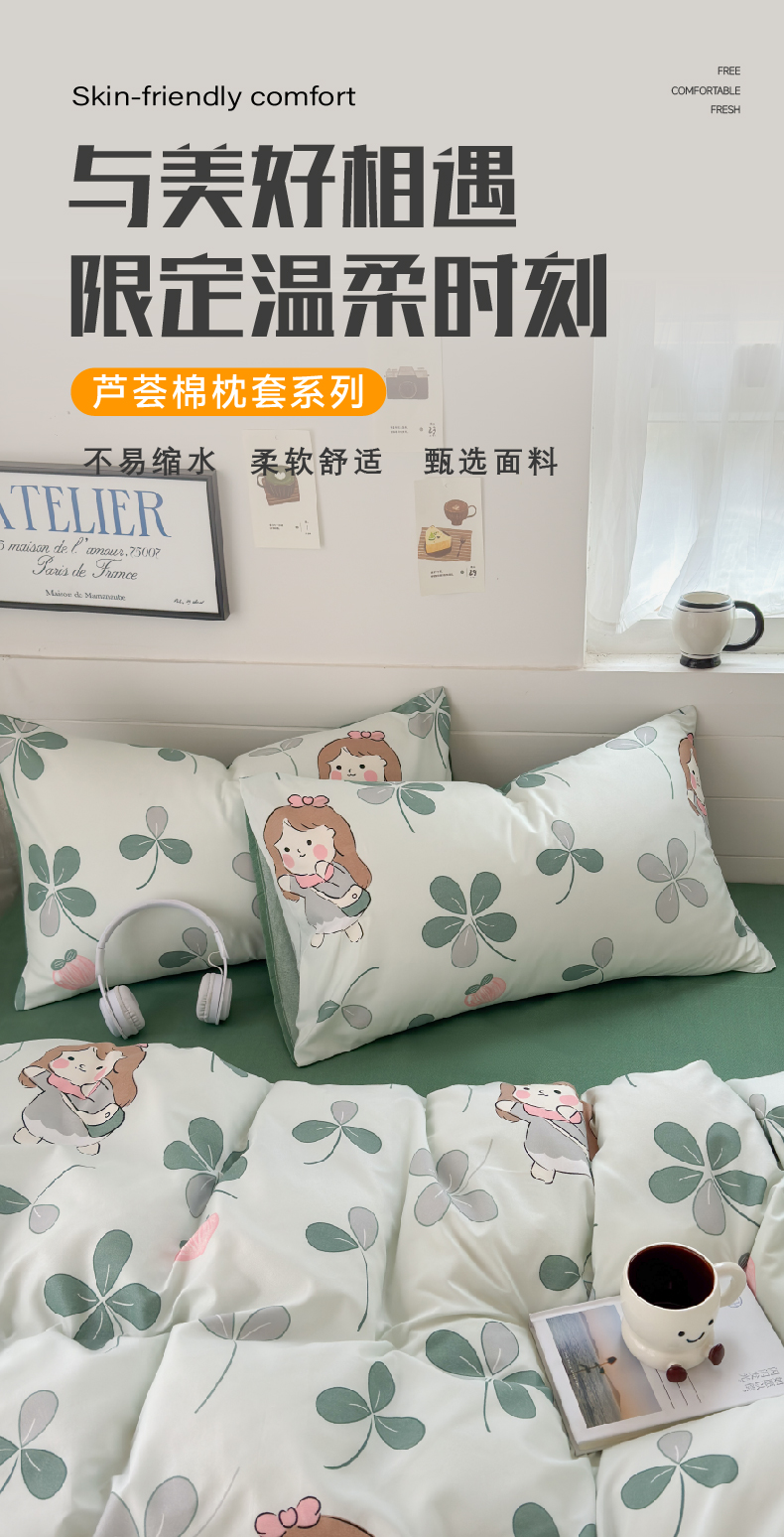 可可家纺 2025新款印花卡通芦荟棉枕套亲肤信封式枕头套小清新 花园女孩