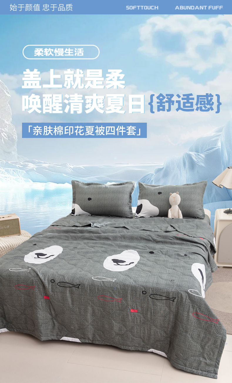 商品名称:乐居坊2025新款亲肤舒适印花芦荟棉夏凉被四件套 乐萌熊