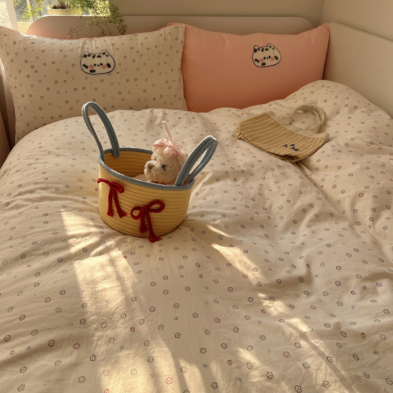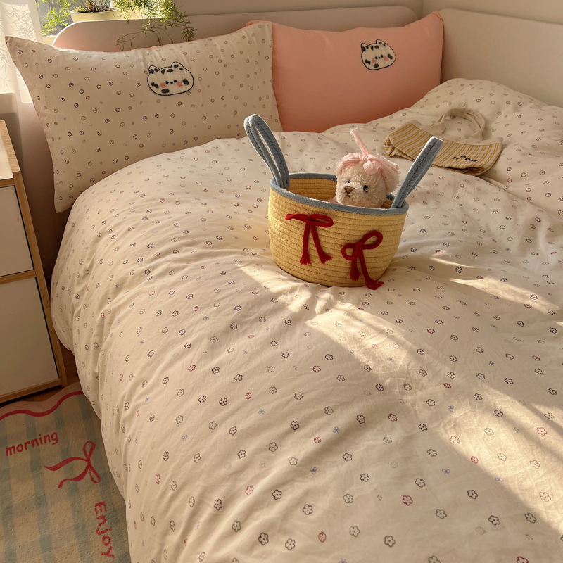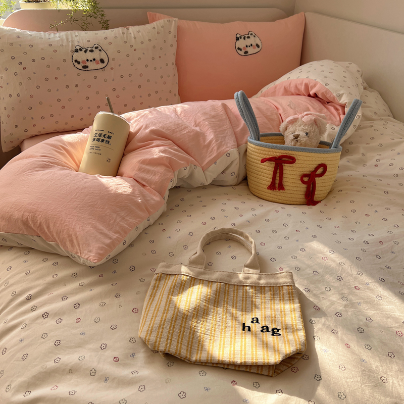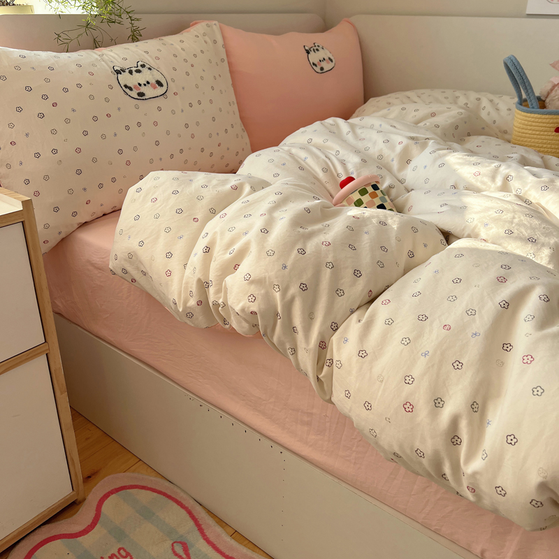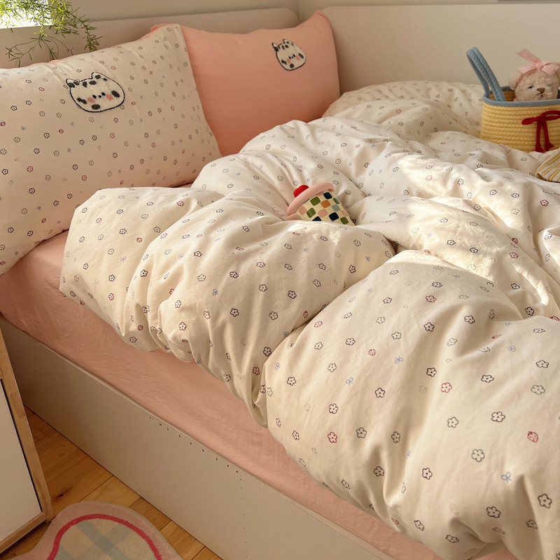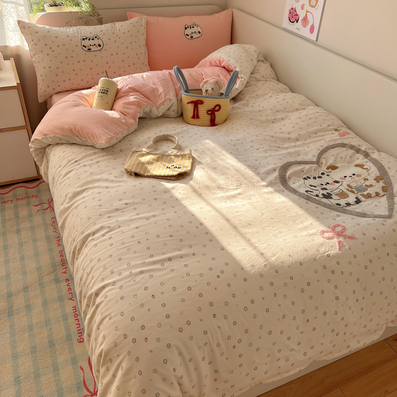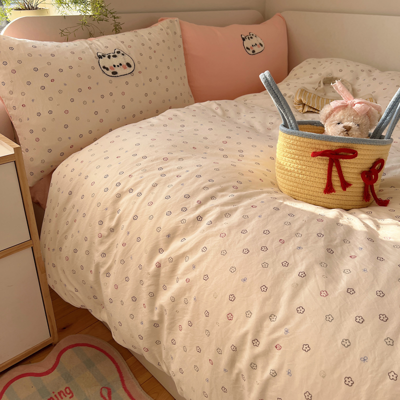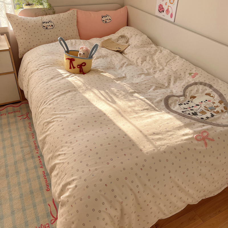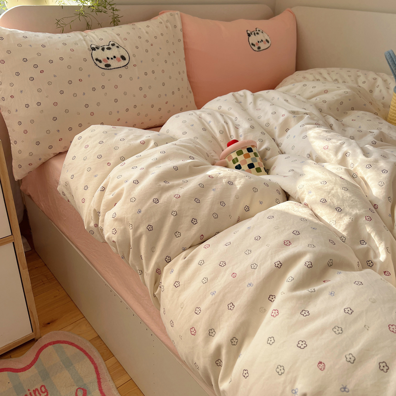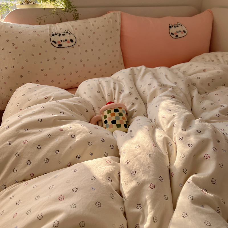 商品名称:顾里家纺 2025新款ins韩系童趣毛巾绣云朵棉四件套 奶茶好友