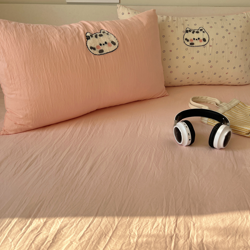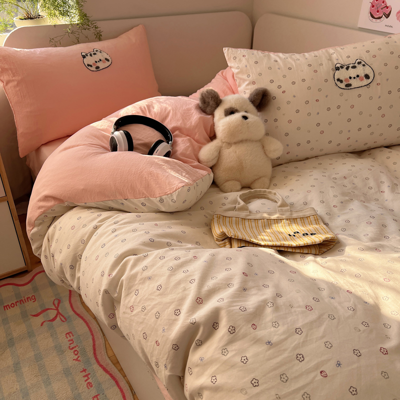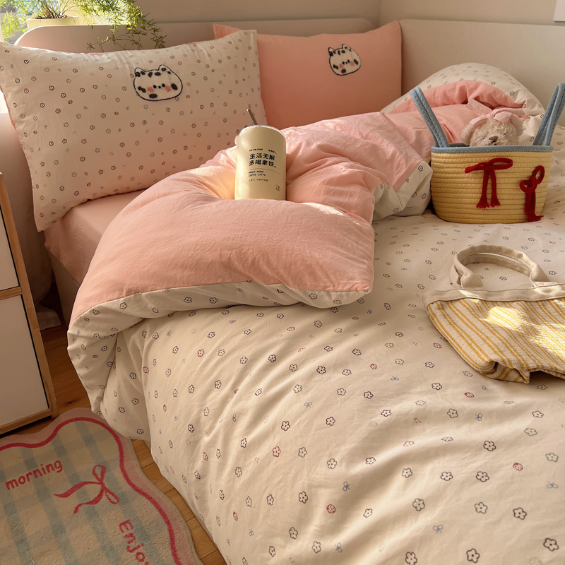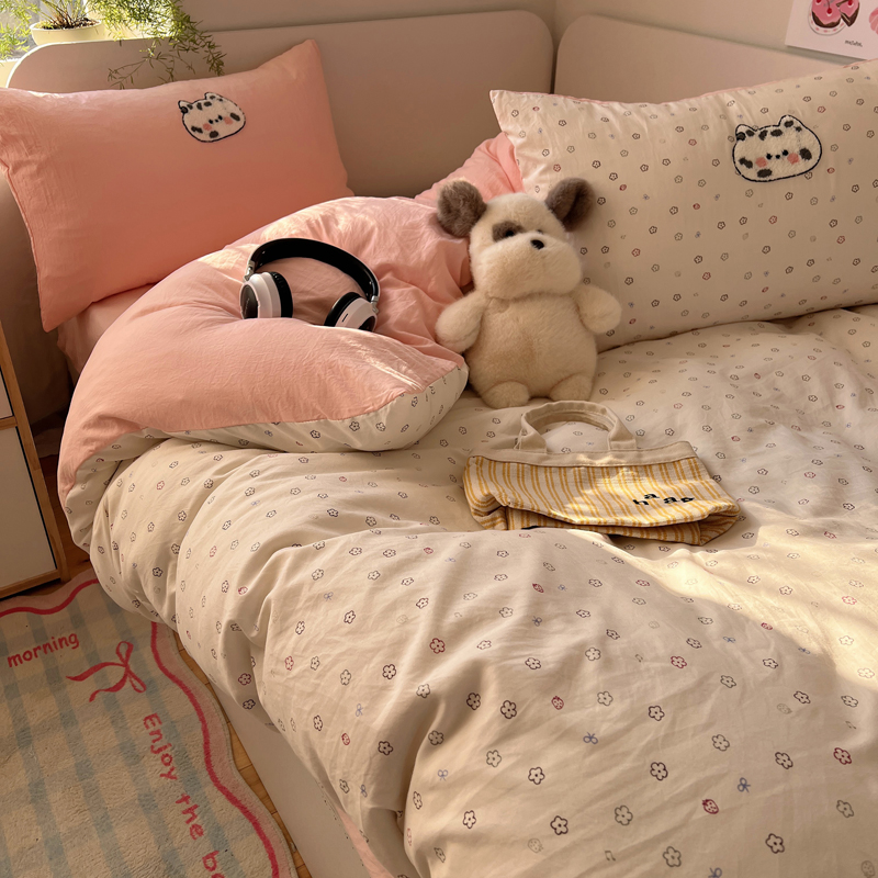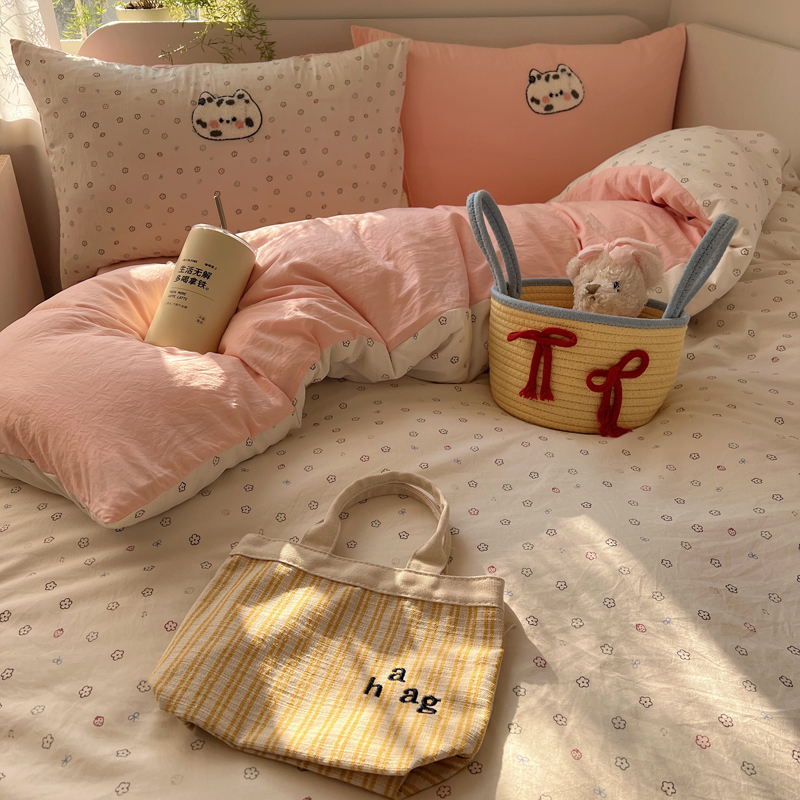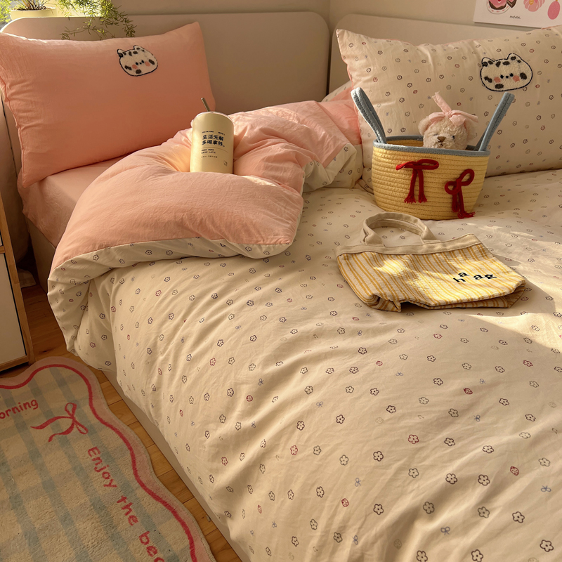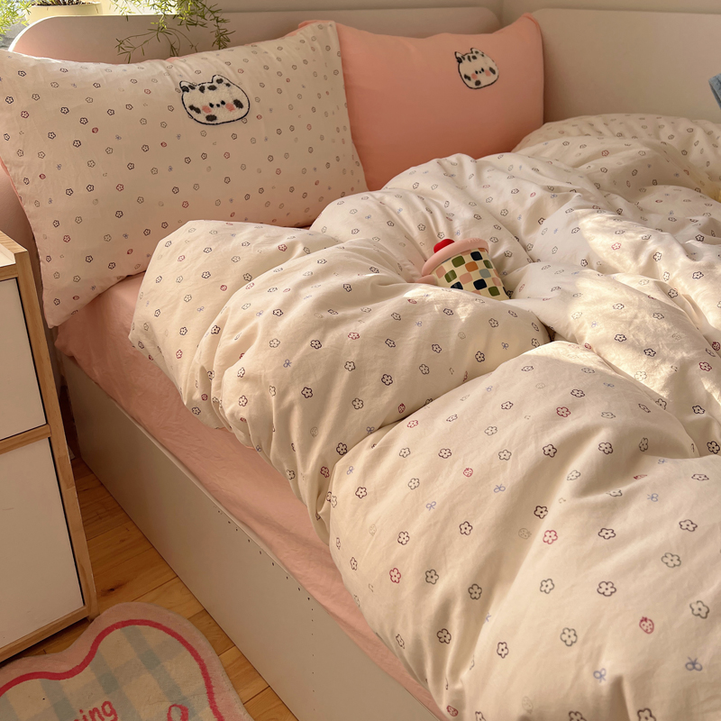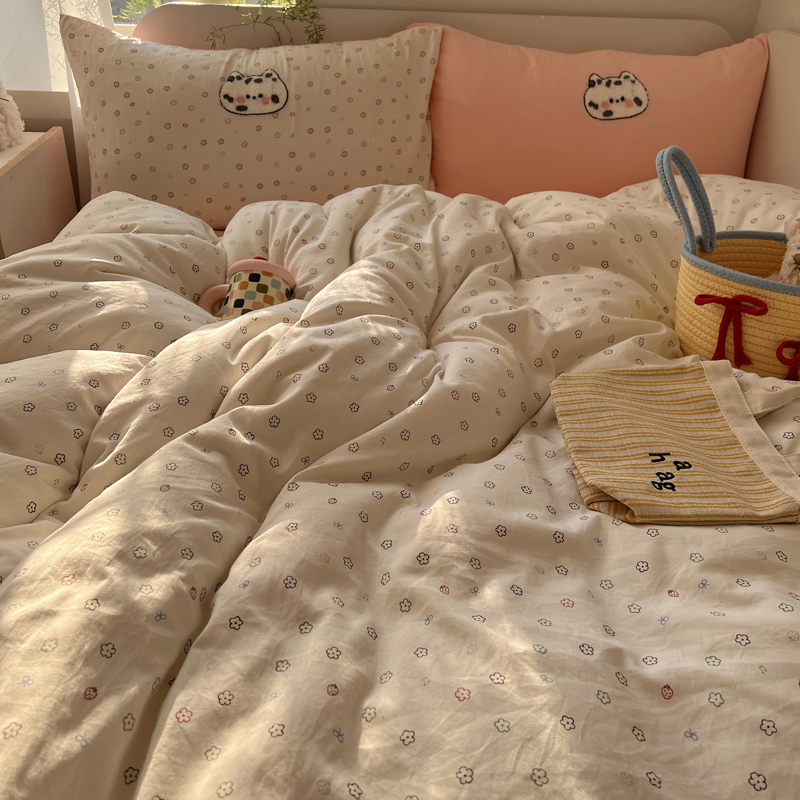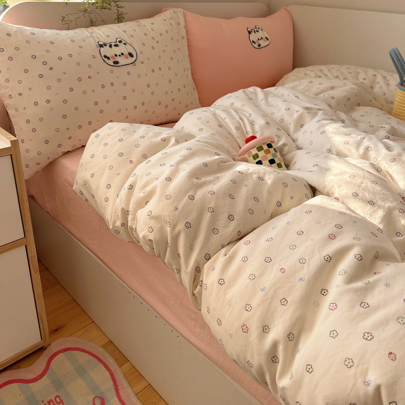 商品名称:顾里家纺 2025新款ins韩系童趣毛巾绣云朵棉四件套 奶茶好友