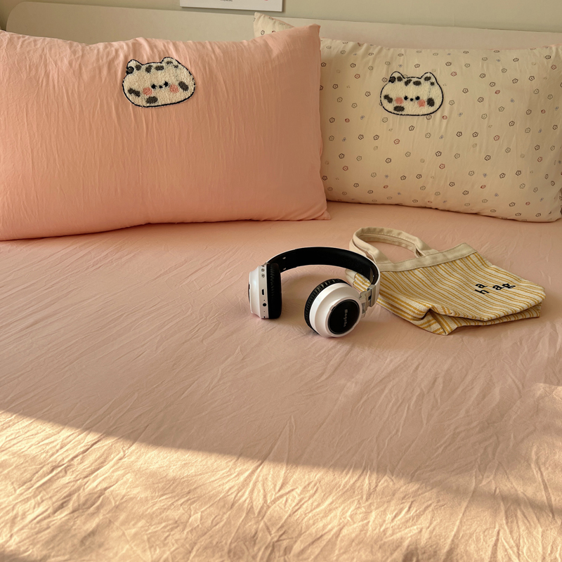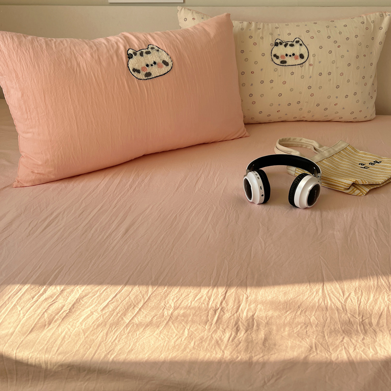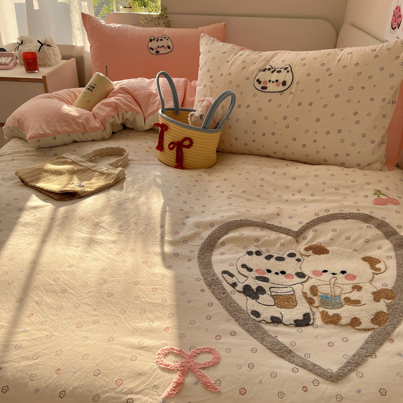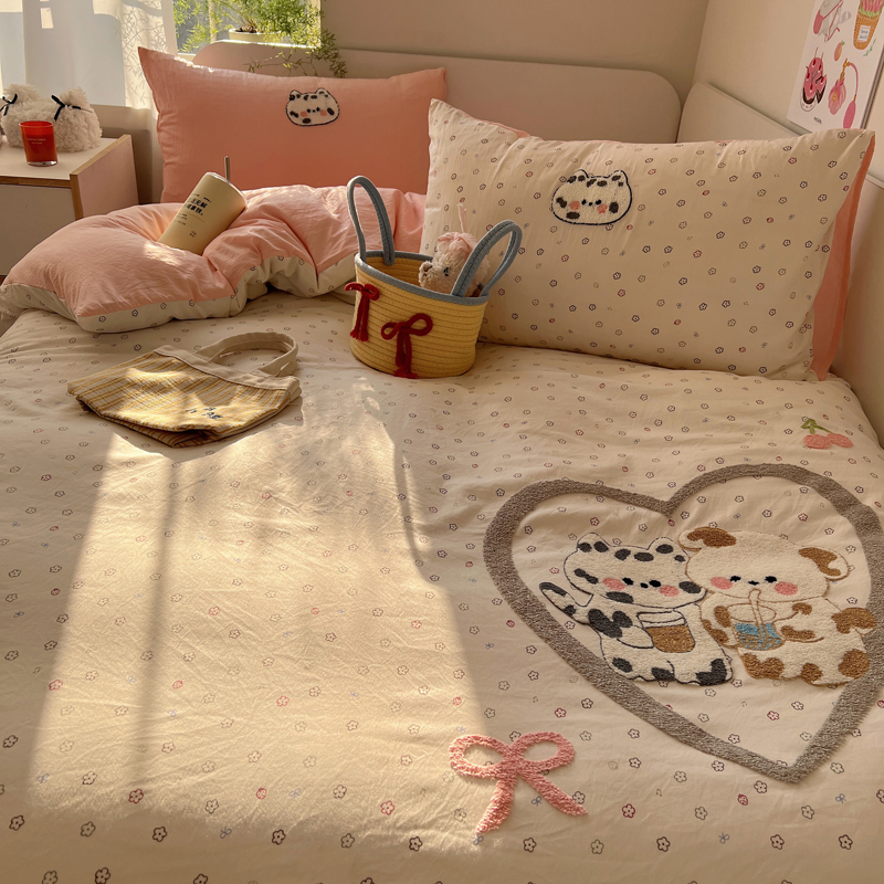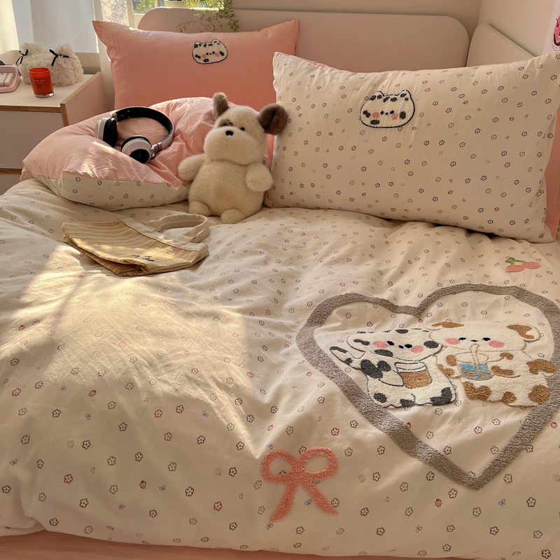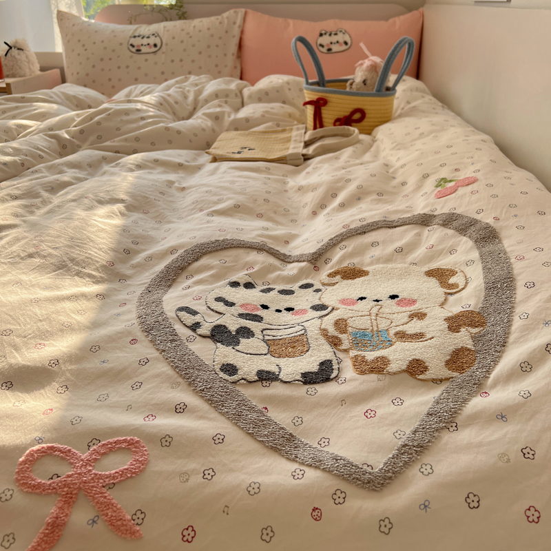 顾里家纺 2025新款ins韩系童趣毛巾绣云朵棉四件套 奶茶好友