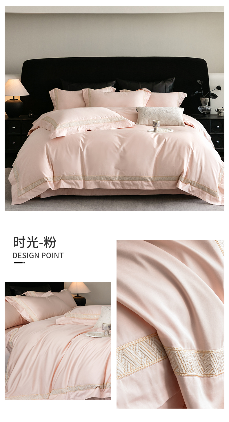 商品名称:2025新款全棉长绒棉刺绣四件套-时光 时光-粉