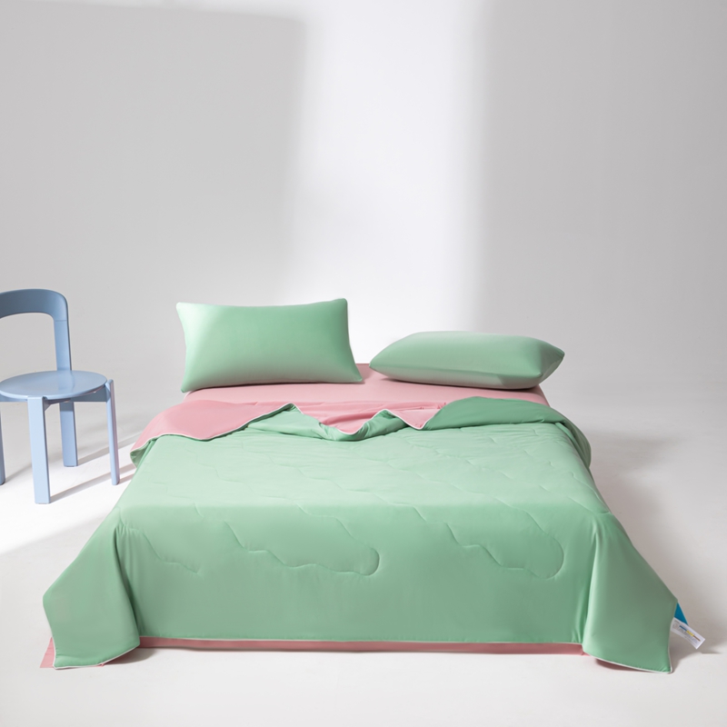 样样红被业 2025新款抗菌凉感丝夏被 绿+豆沙