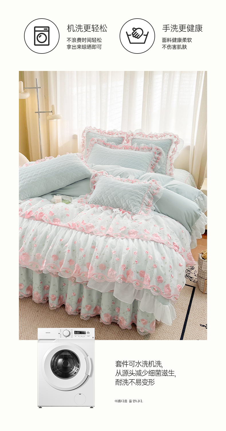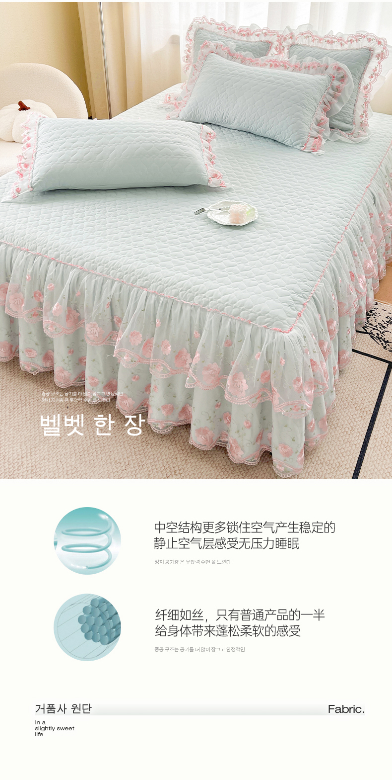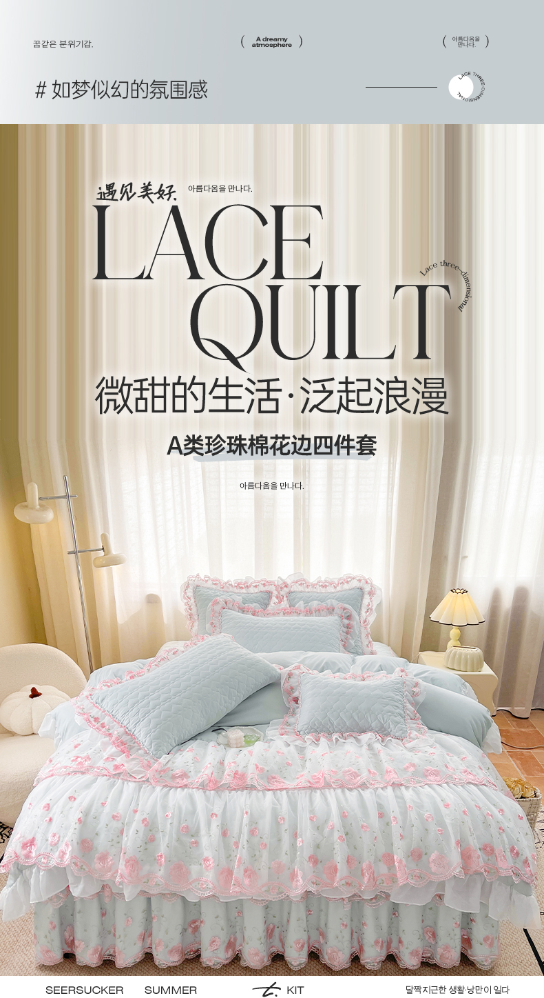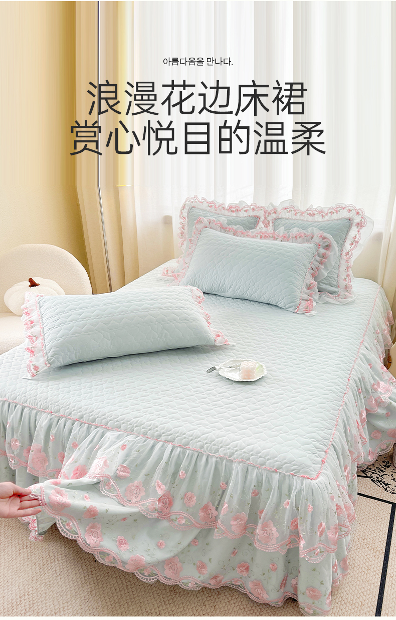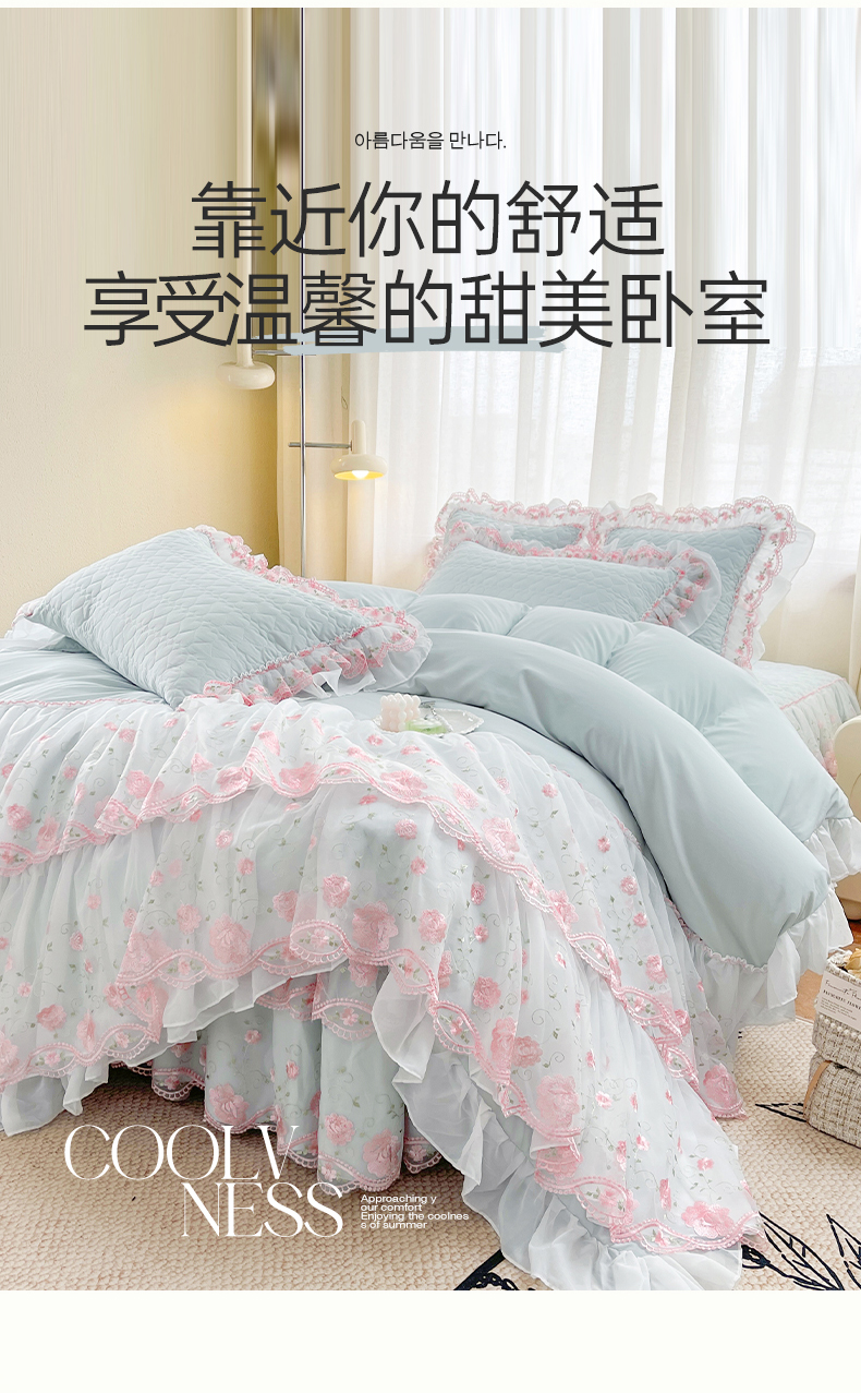 当前位置: 91家纺网 > 商品网购 > 床品套件 > 四件套 > 化纤普通四件套 > 罗艺轩 2025新款A类珍珠棉花边床裙四件套-梦幻花园 梦幻花园-蓝灰色