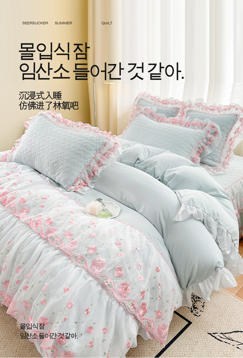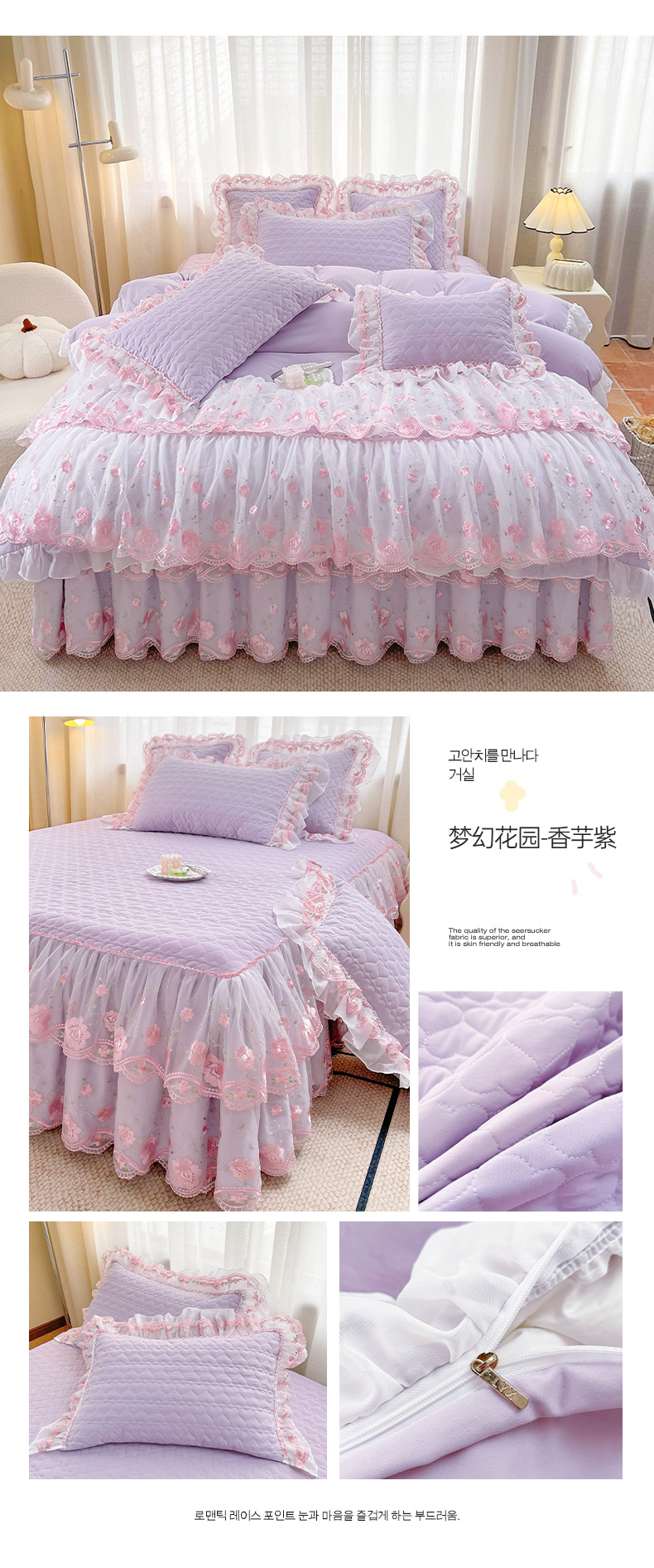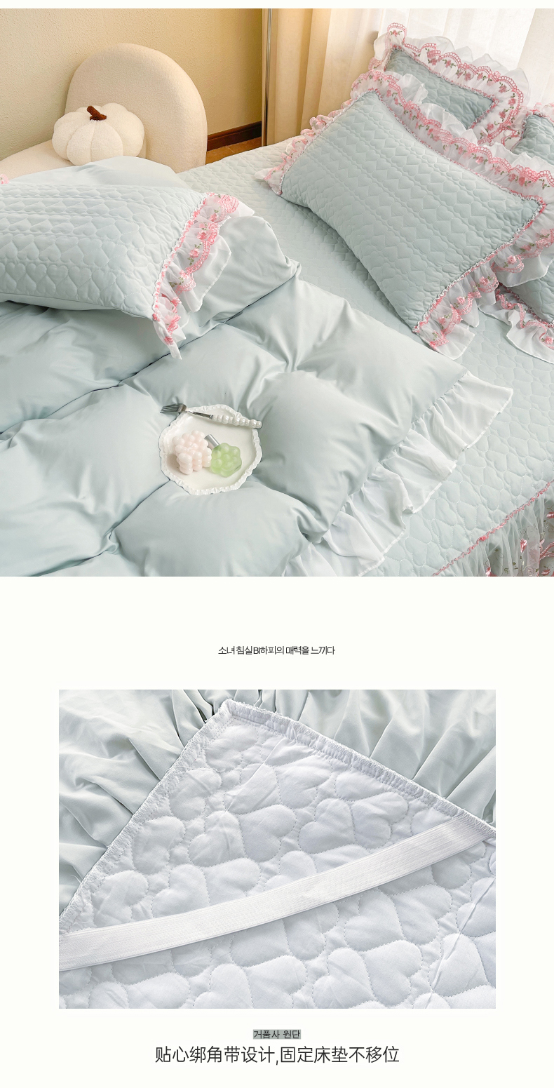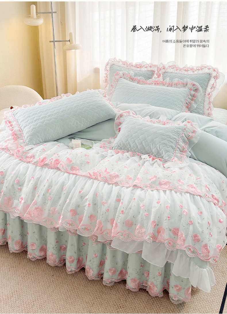 当前位置: 91家纺网 > 商品网购 > 床品套件 > 四件套 > 化纤普通四件套 > 罗艺轩 2025新款A类珍珠棉花边床裙四件套-梦幻花园 梦幻花园-蓝灰色