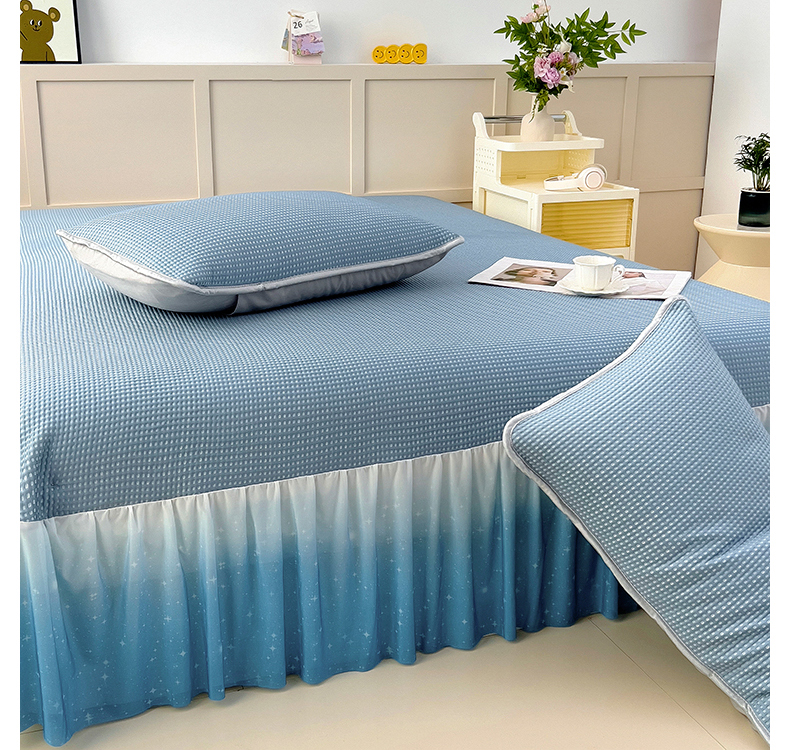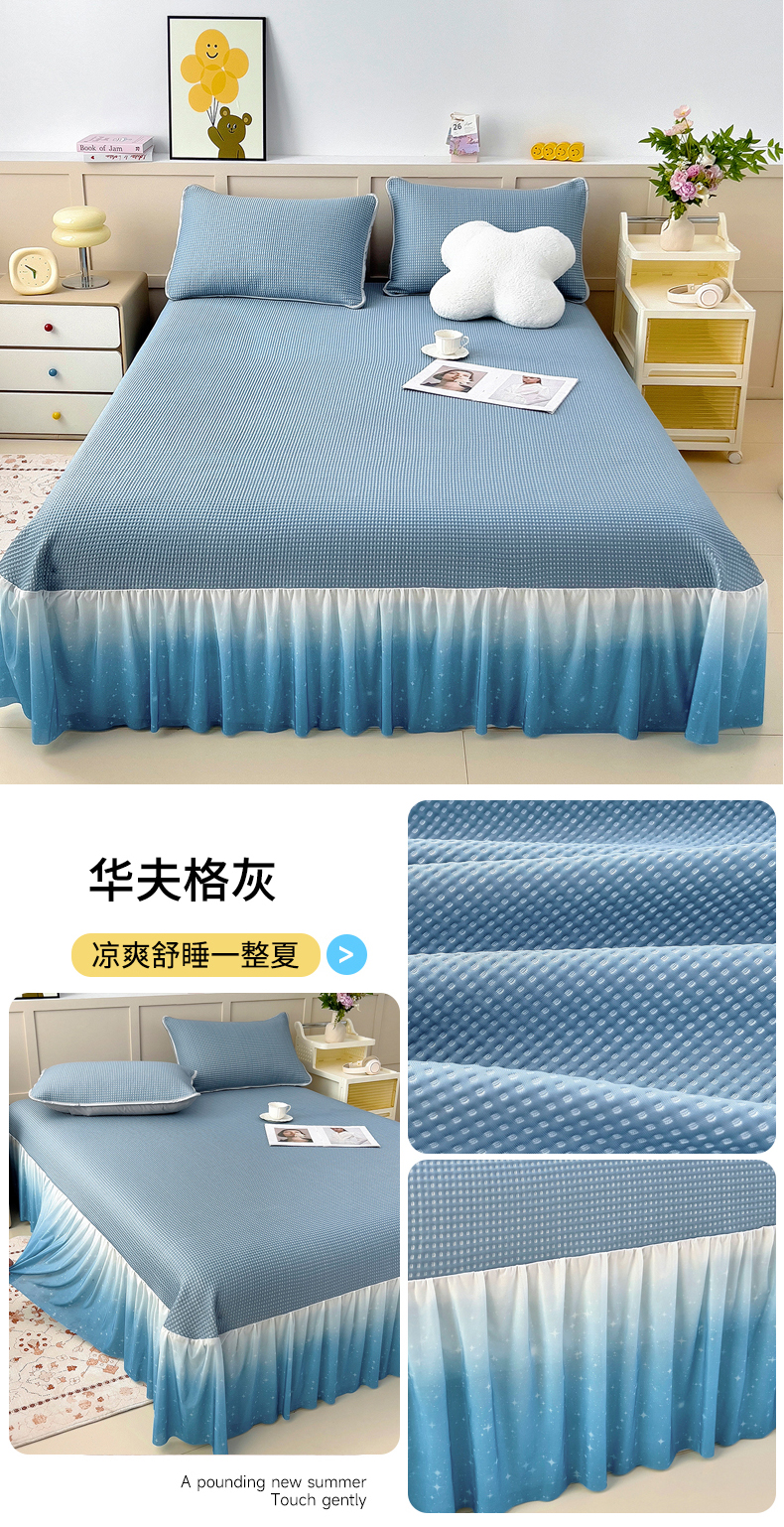(总)情煊 2025新款a类凉感冰豆豆床裙冰豆豆凉席床盖,华夫格粉,华夫格灰,华夫格蓝,华夫格绿,华夫格香槟