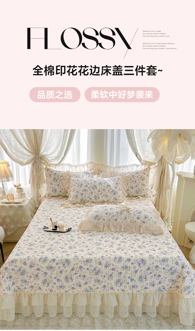 当前位置: 91家纺网 > 商品网购 > 床品套件 > 三件套 > 罗艺轩 2025新款全棉印花花边床盖三件套 绮丽花海-蓝紫