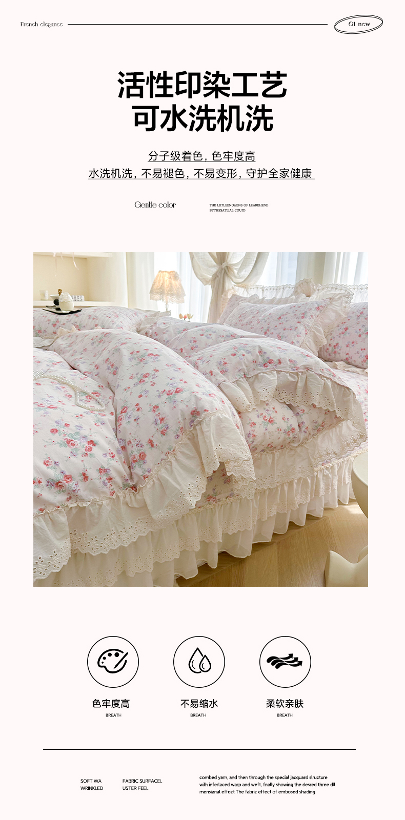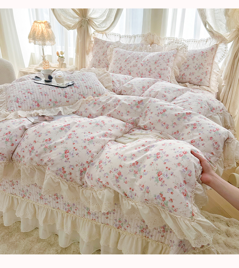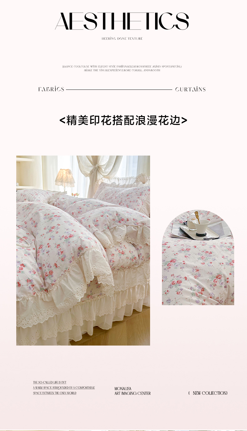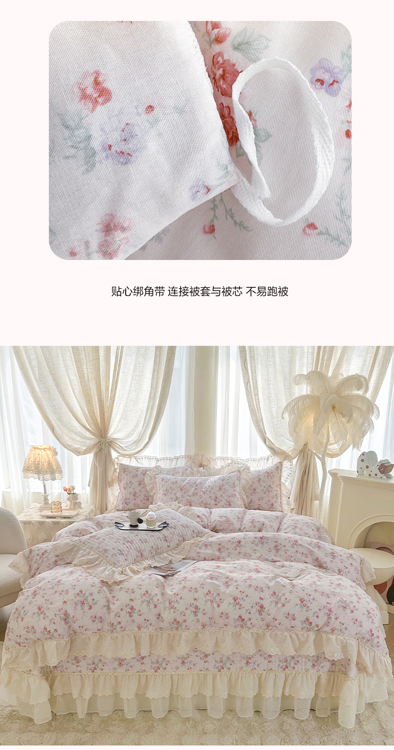 当前位置: 91家纺网 > 商品网购 > 床品套件 > 四件套 > 全棉普通四件套 > 罗艺轩 2025新款全棉印花花边床盖四件套 洛琳粉