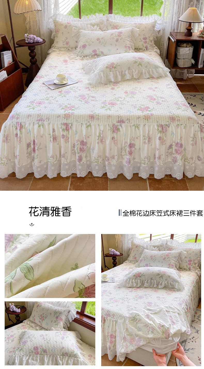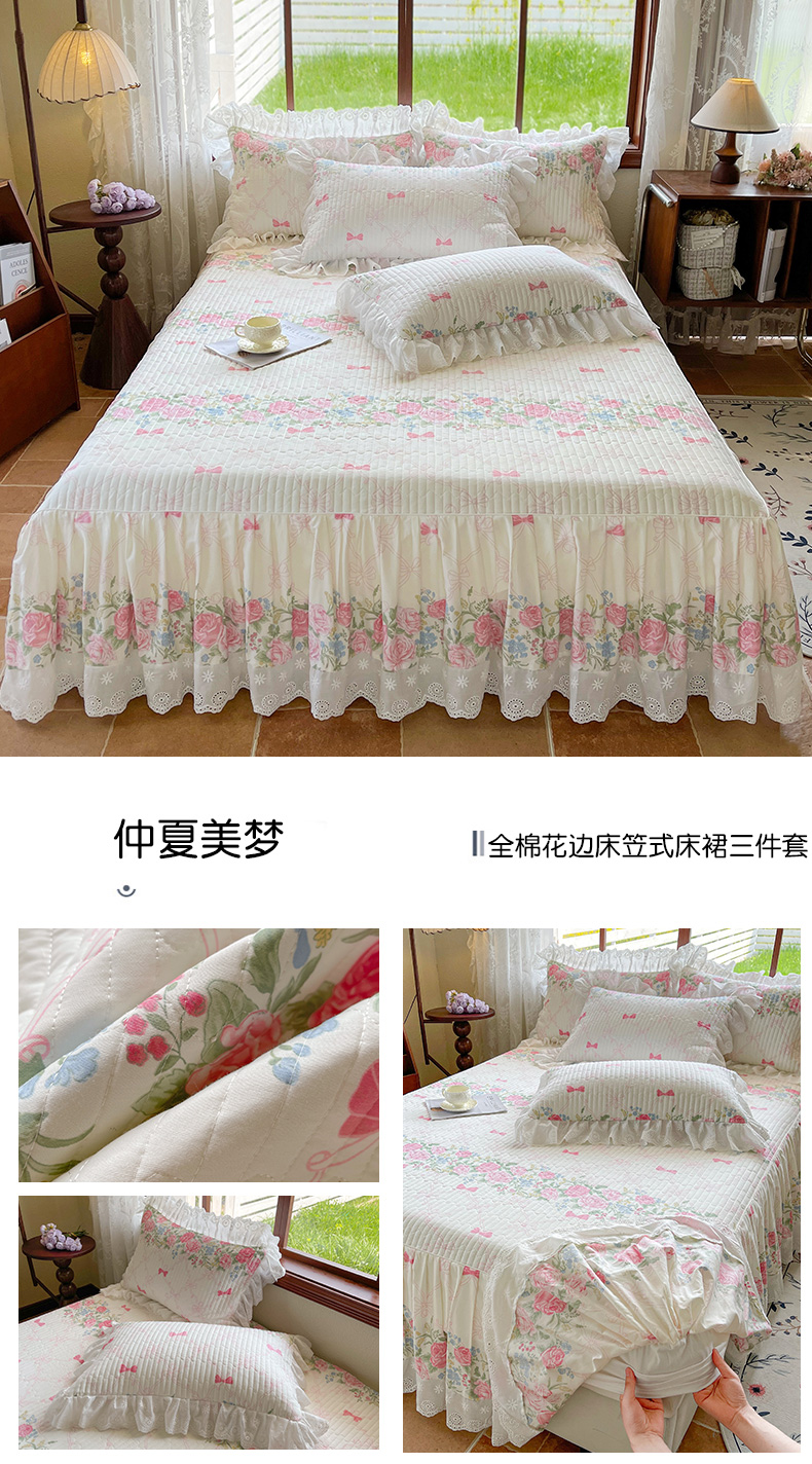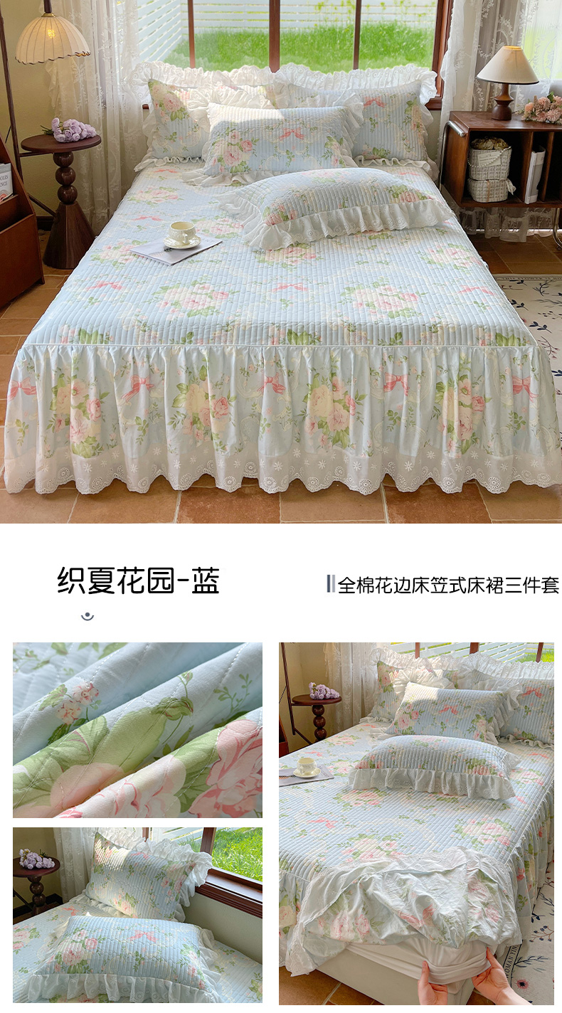 当前位置: 91家纺网 > 商品网购 > 床品套件 > 三件套 > 罗艺轩 2025新款全棉印花床笠式床裙三件套 爱丽花园