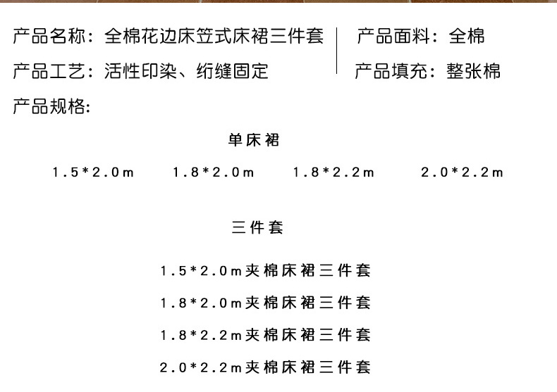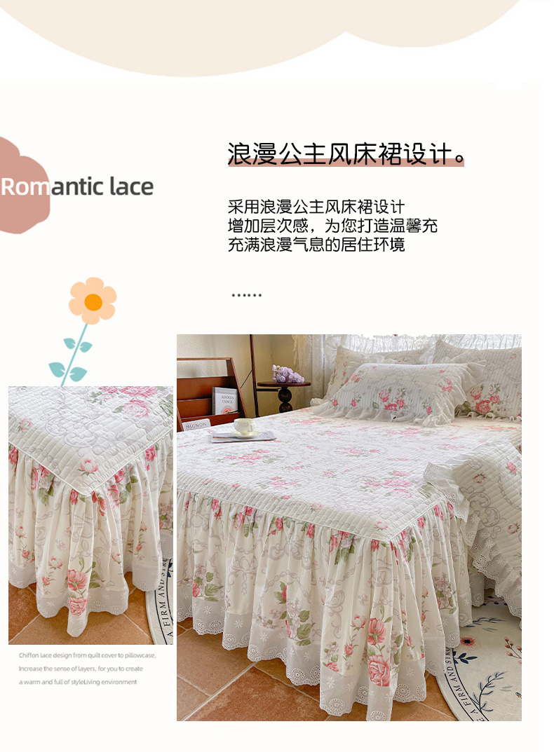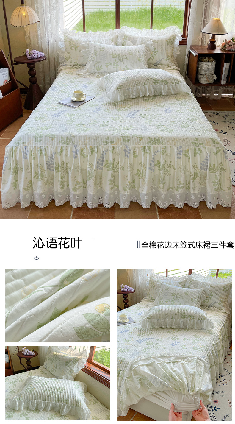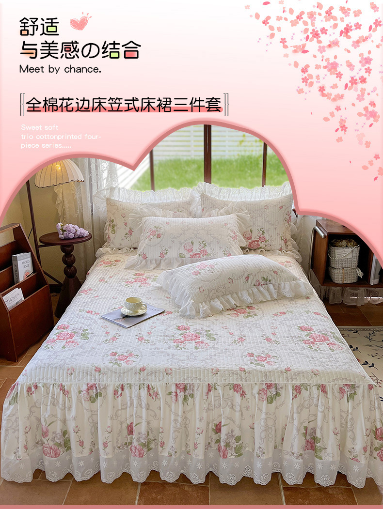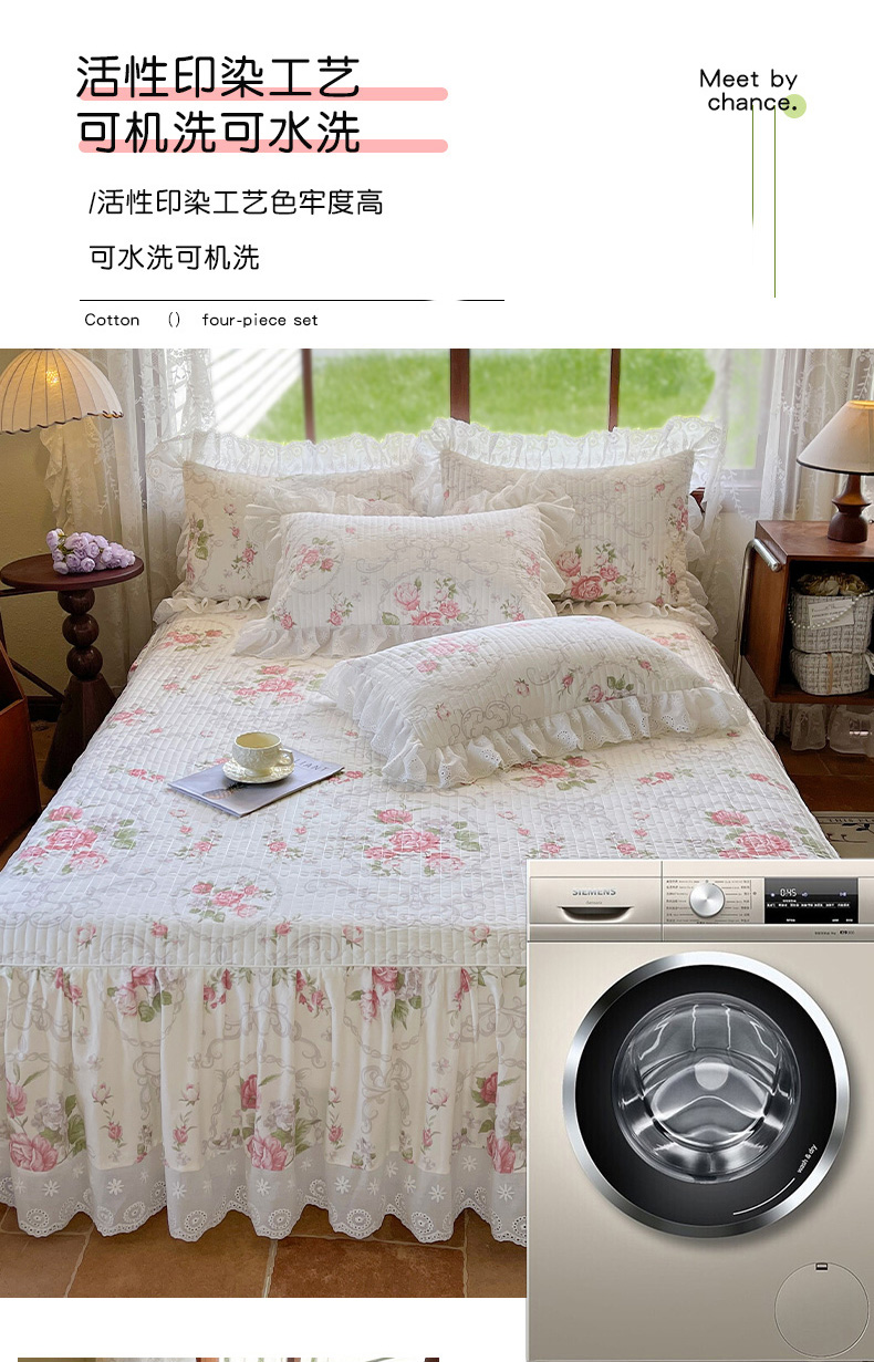 当前位置: 91家纺网 > 商品网购 > 床品套件 > 三件套 > 罗艺轩 2025新款全棉印花床笠式床裙三件套 爱丽花园