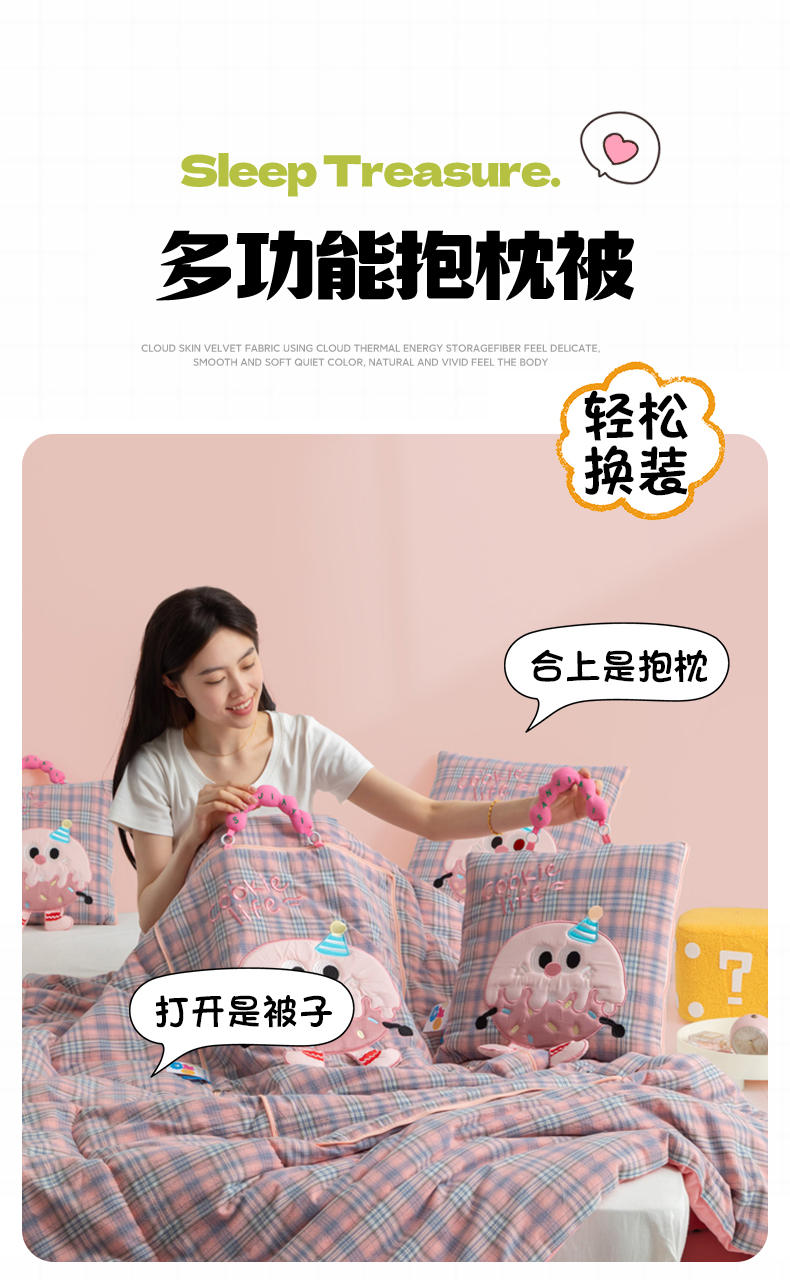 (总)2025新款加厚款图拉拉系列抱枕被,图拉拉粉色,图拉拉咖啡色,图拉拉卡其色