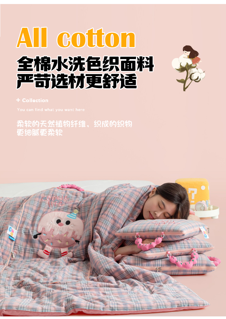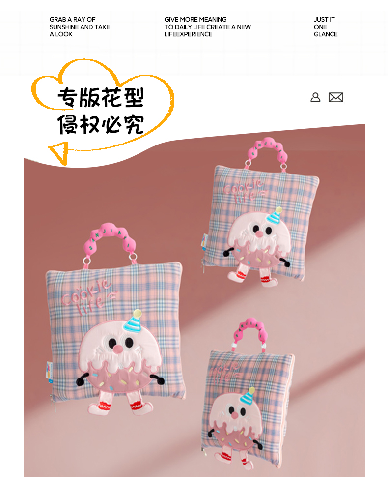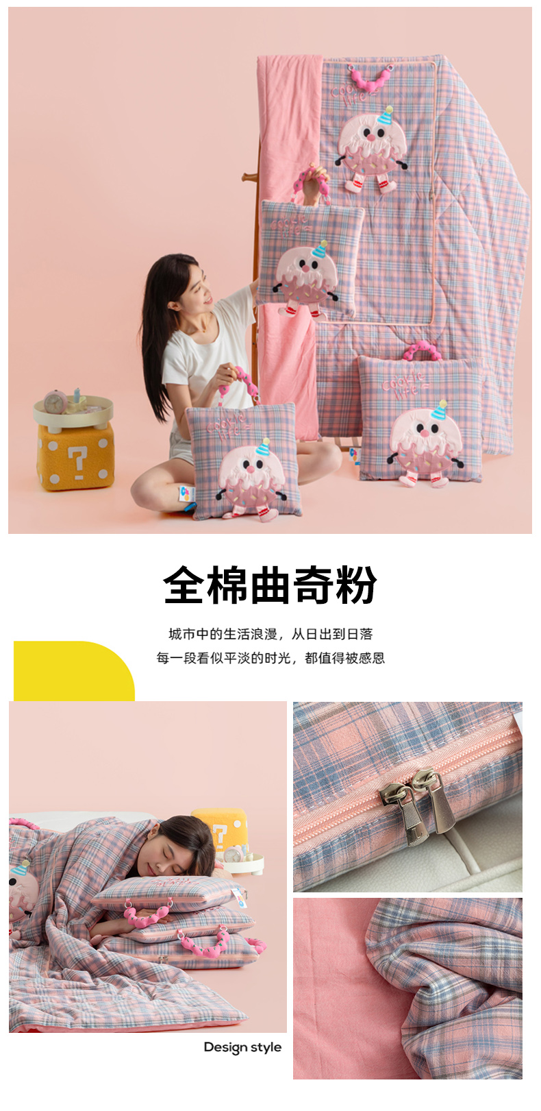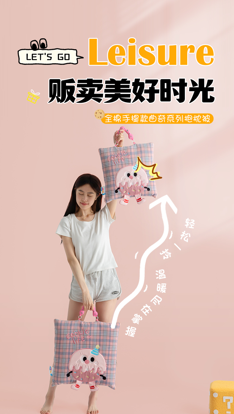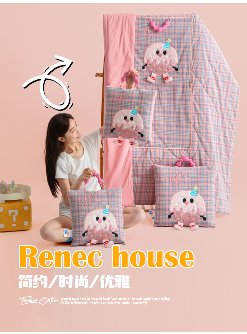 商品名称:雷娜家居 2025新款全棉手提款曲奇系列抱枕被 全棉曲奇粉