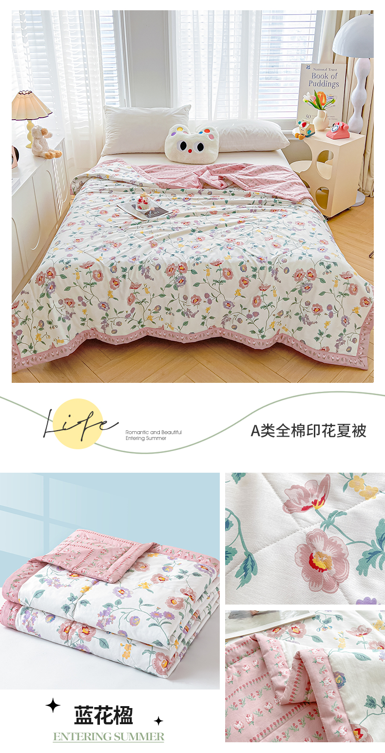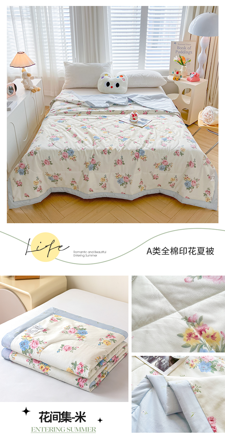 商品名称:小石头家纺 2025新款A类小清新纯棉印花夏被 梦入芬芳