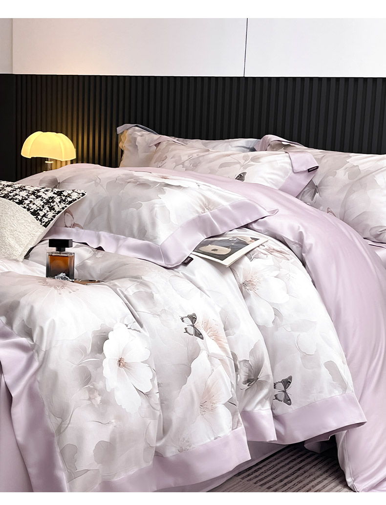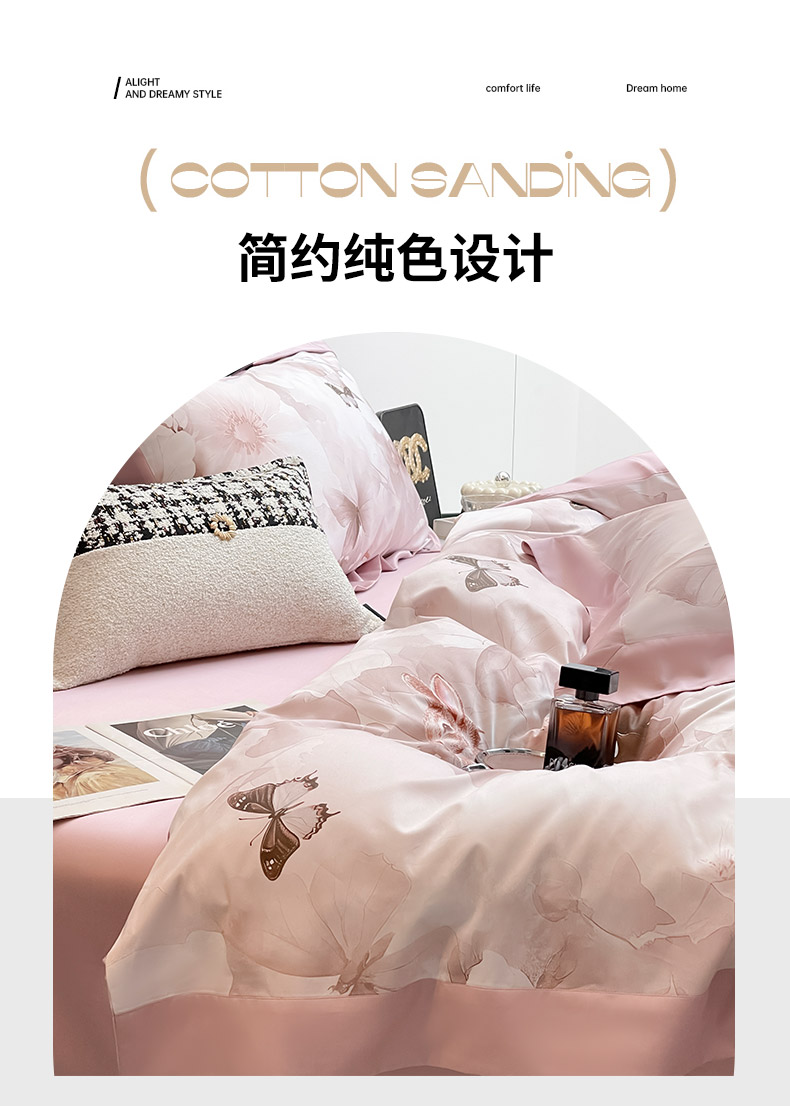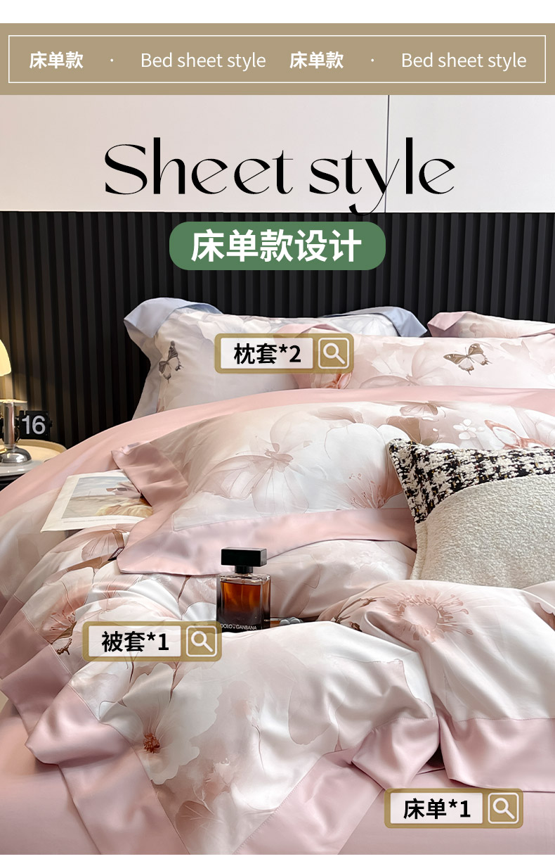 2025夏季A类母婴级天丝棉印花四件套纯棉全棉高端数码印花丝滑裸睡长绒棉被套真丝床上用品 蝶织梦-粉