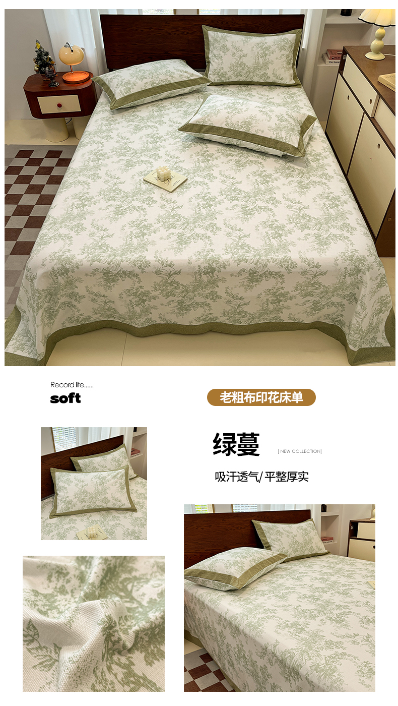 宜代光年 2025新款全棉老粗布数码印花床单(拼角工艺) 绿蔓