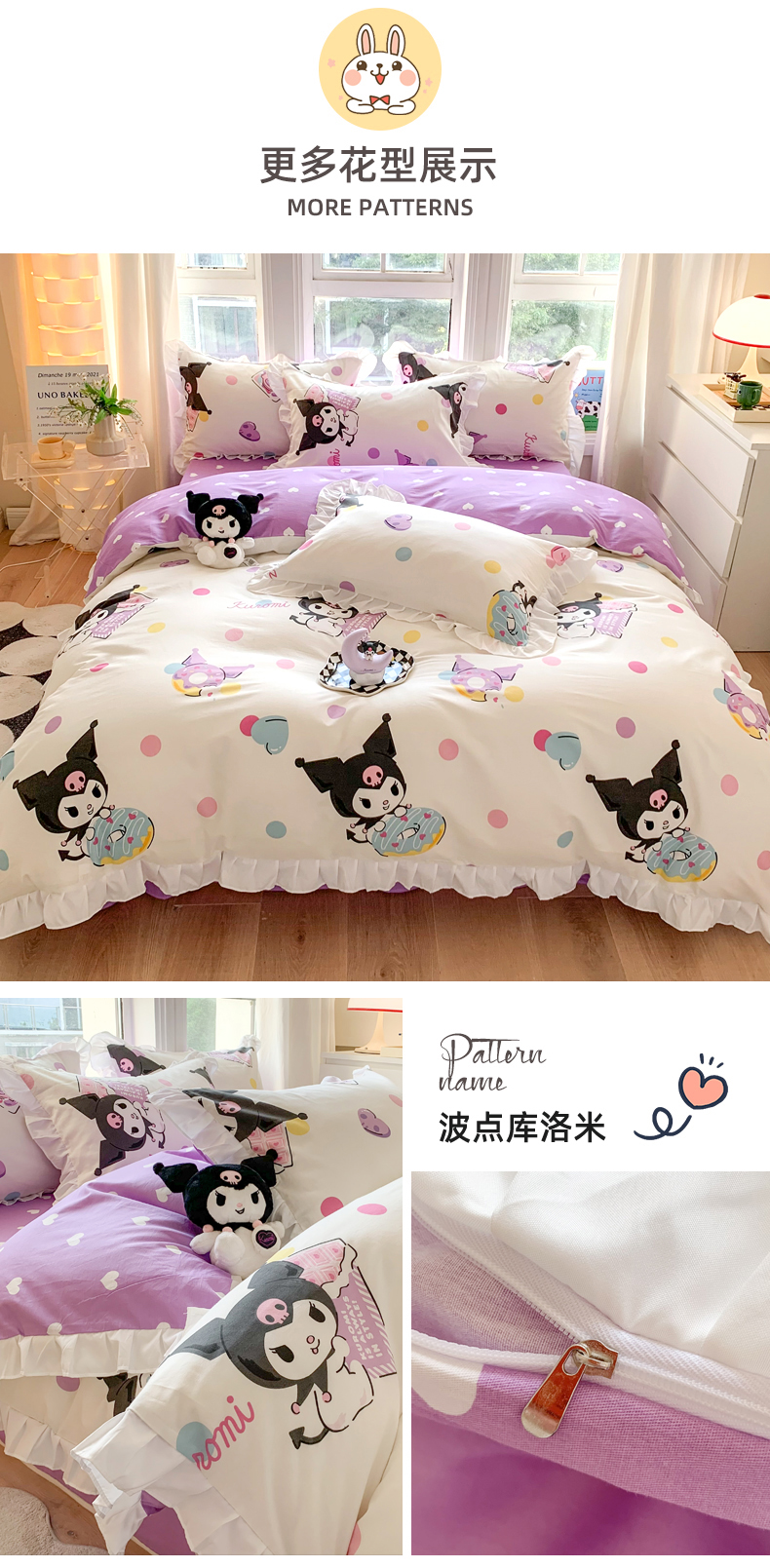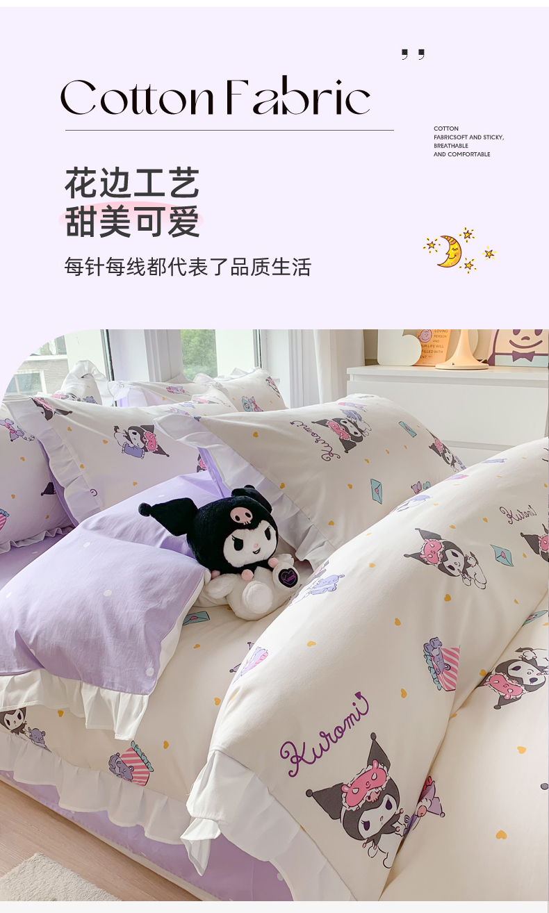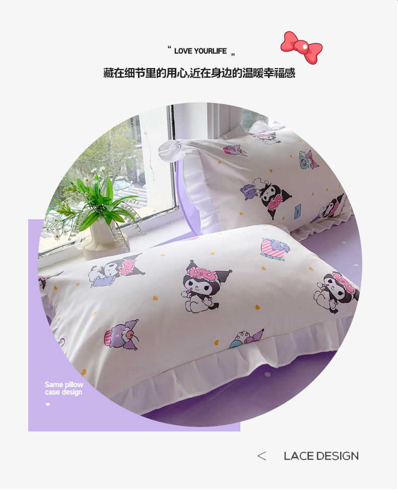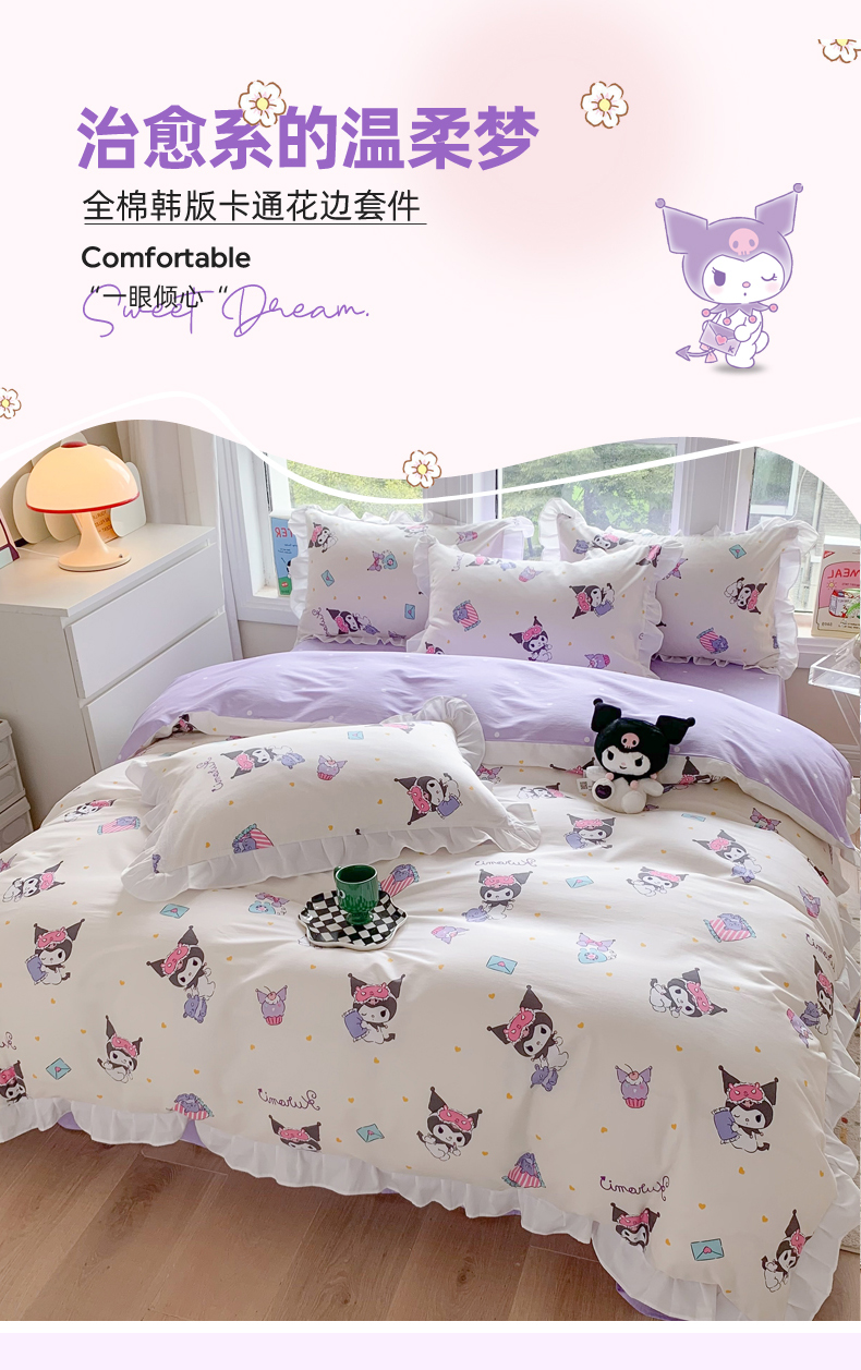 当前位置: 91家纺网 > 商品网购 > 床品套件 > 四件套 > 全棉普通四件套 > 玉元坊 2025年5月新品 三丽鸥花边被套全棉床单纯棉床裙床笠三四件套-库洛米系列 库洛米伙伴【花边款】