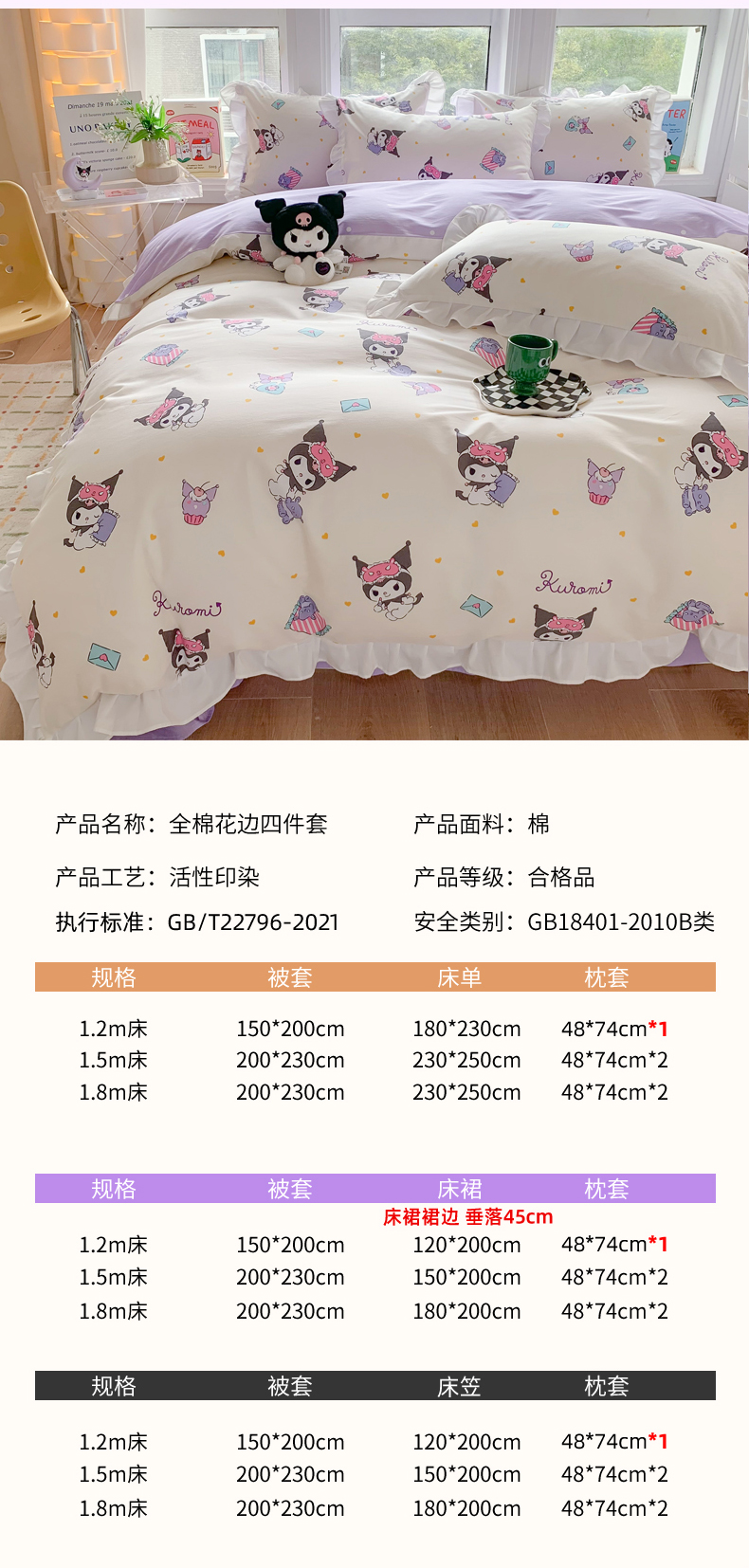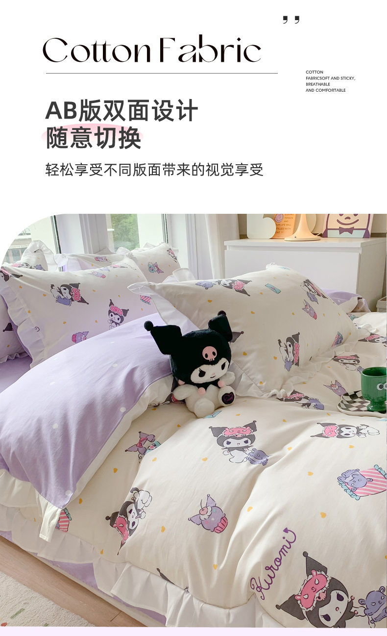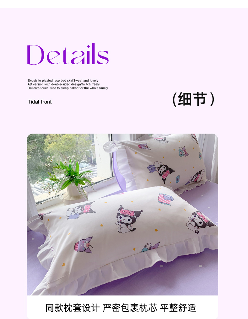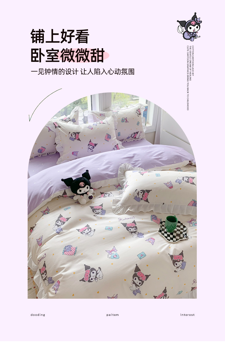 当前位置: 91家纺网 > 商品网购 > 床品套件 > 四件套 > 全棉普通四件套 > 玉元坊 2025年5月新品 三丽鸥花边被套全棉床单纯棉床裙床笠三四件套-库洛米系列 库洛米伙伴【花边款】
