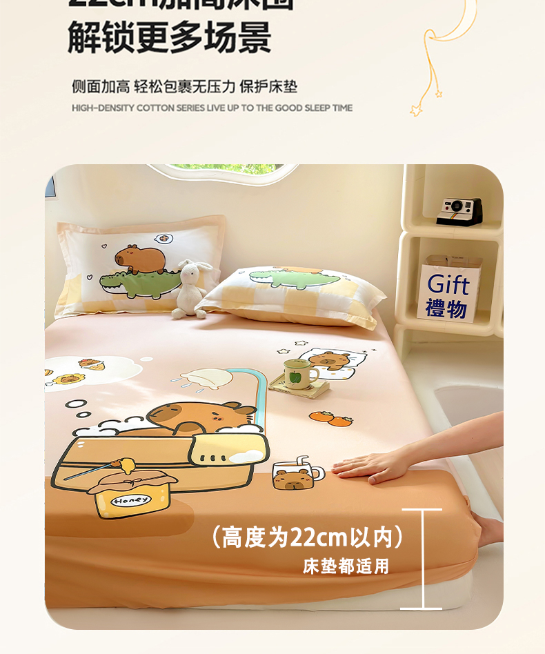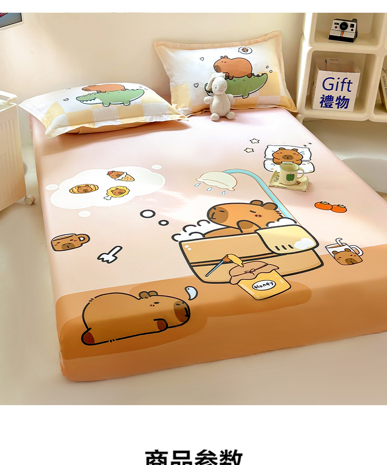 商品名称:浩诚 2025新款卡皮巴拉原创IP全棉纯棉大版单床笠单枕套床笠枕套单件-有作品登记证书 向往的生活