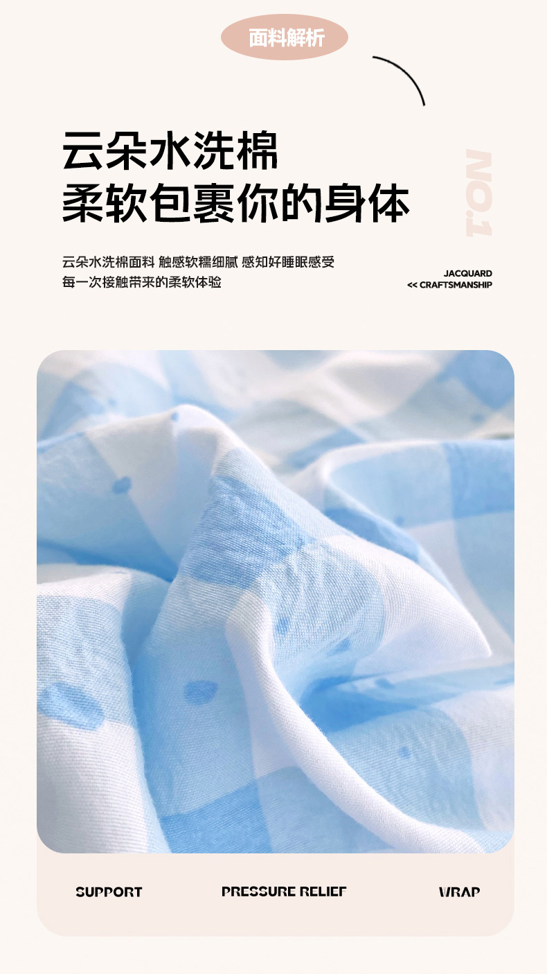 商品名称:(总)雨彤家纺 2025年新款软糯糯云朵水洗棉印花四件套