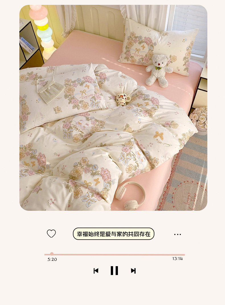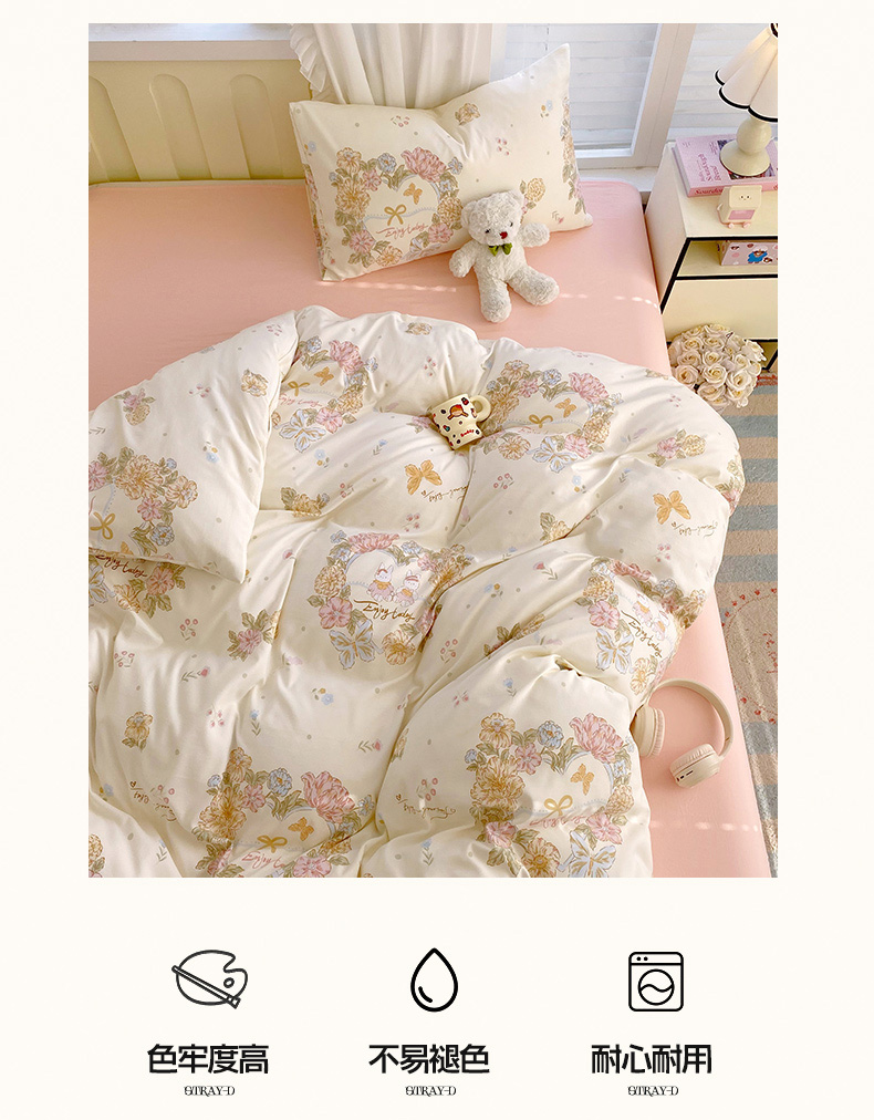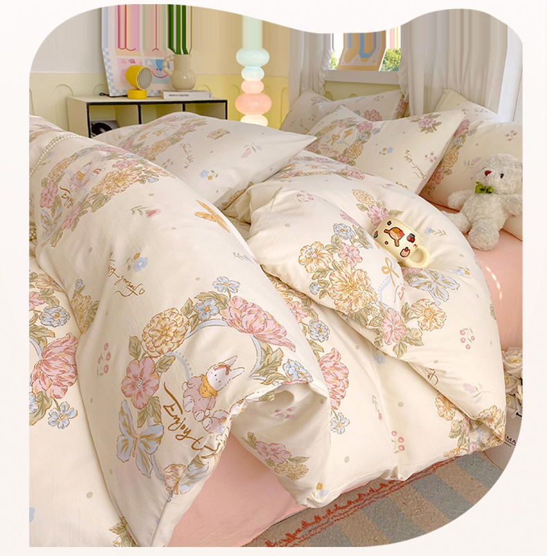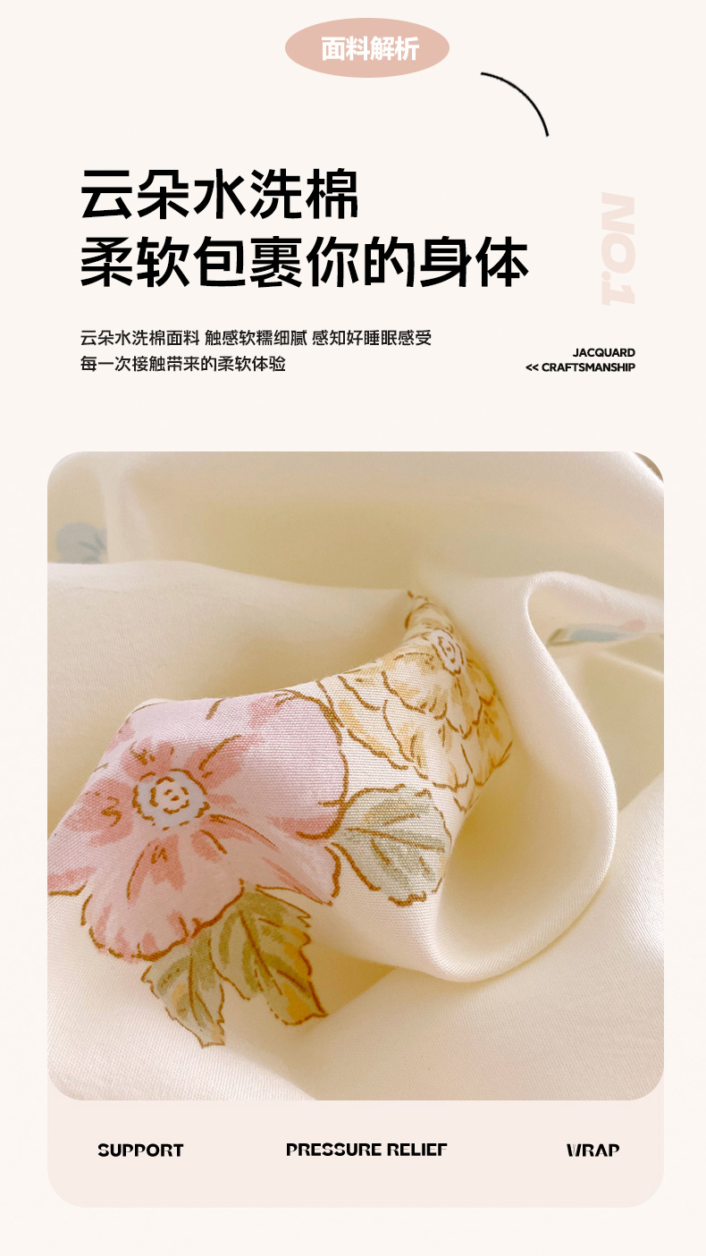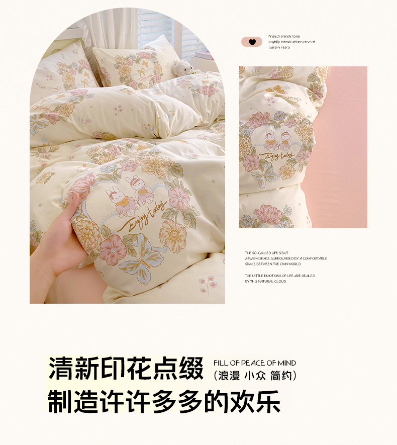 当前位置: 91家纺网 > 商品网购 > 床品套件 > 四件套 > 水洗棉四件套 > 雨彤家纺 2025年新款软糯糯云朵水洗棉印花四件套 优乐花语