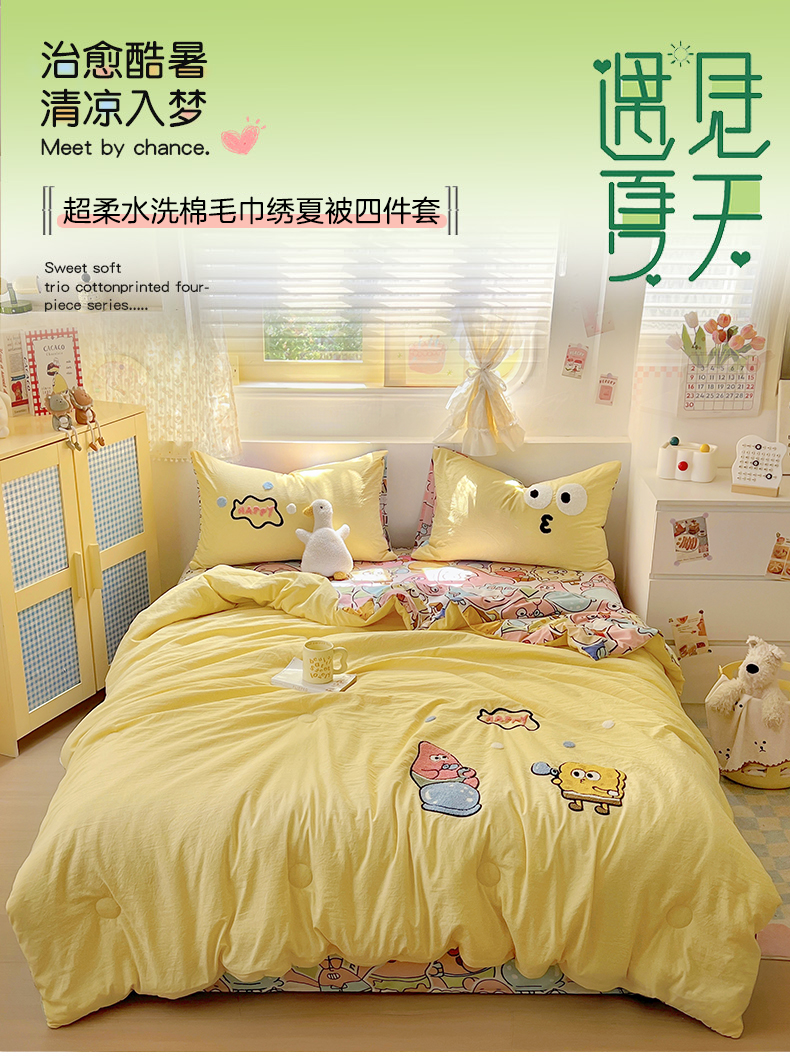 当前位置: 91家纺网 > 商品网购 > 床品套件 > 四件套 > 夏被四件套 > 易辰美 2025新款水洗棉毛巾绣夏被空调被夏凉被四件套 海宝宝