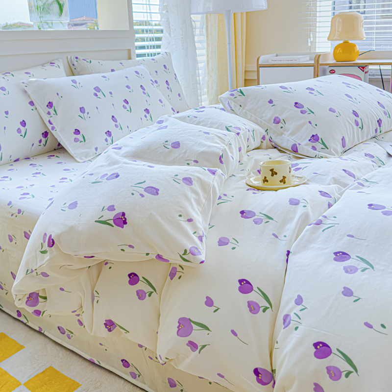 (总)2025韩版双花边多功能AB面牛奶绒四件套甜美仙女法式花边韩式小碎花印花牛奶绒四件套加绒保暖单被套罩,紫韵花开,富贵花开,简约之家,花语,梦幻花园,春暖花开