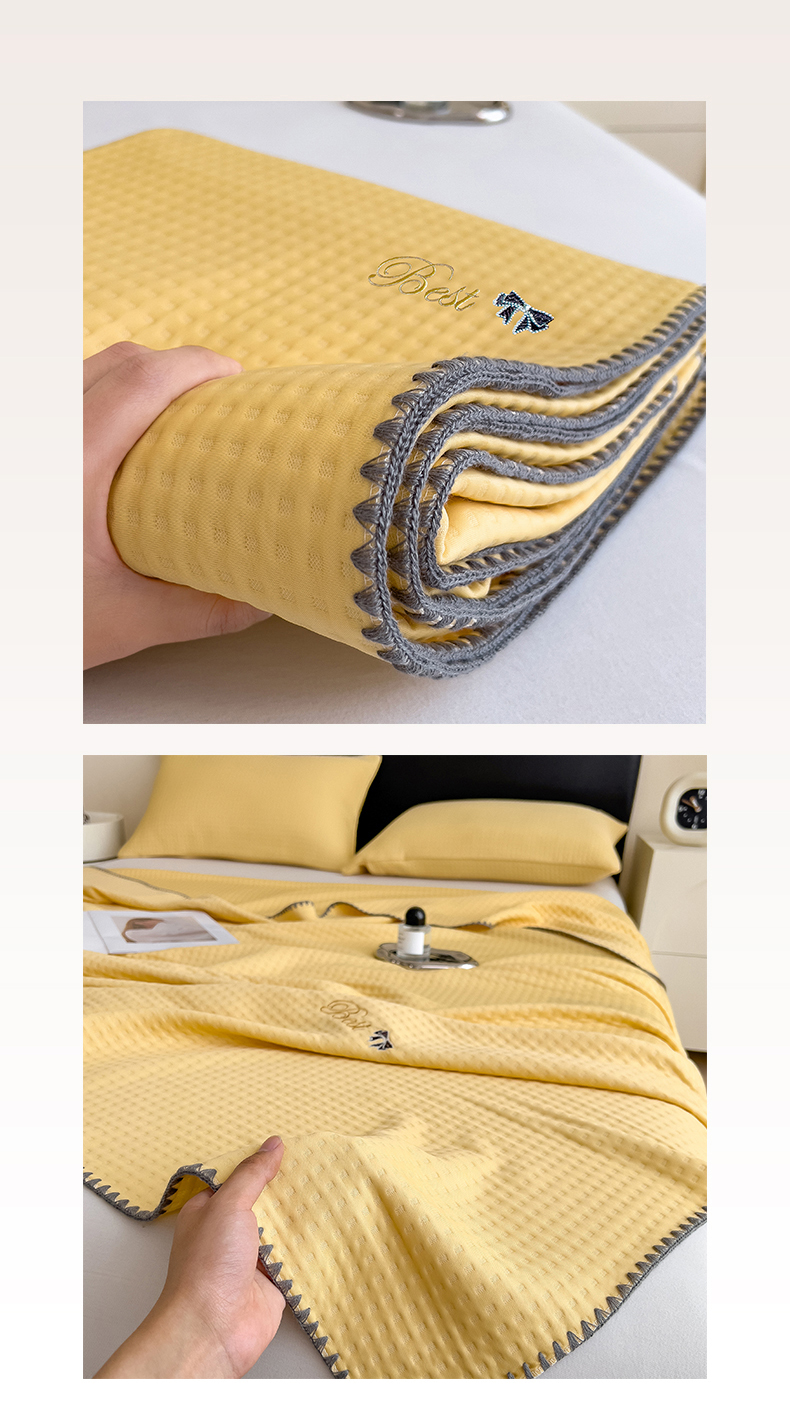 米菲 2025新款刺绣华夫格多功能毯盖毯毯子 组合图仅做展示