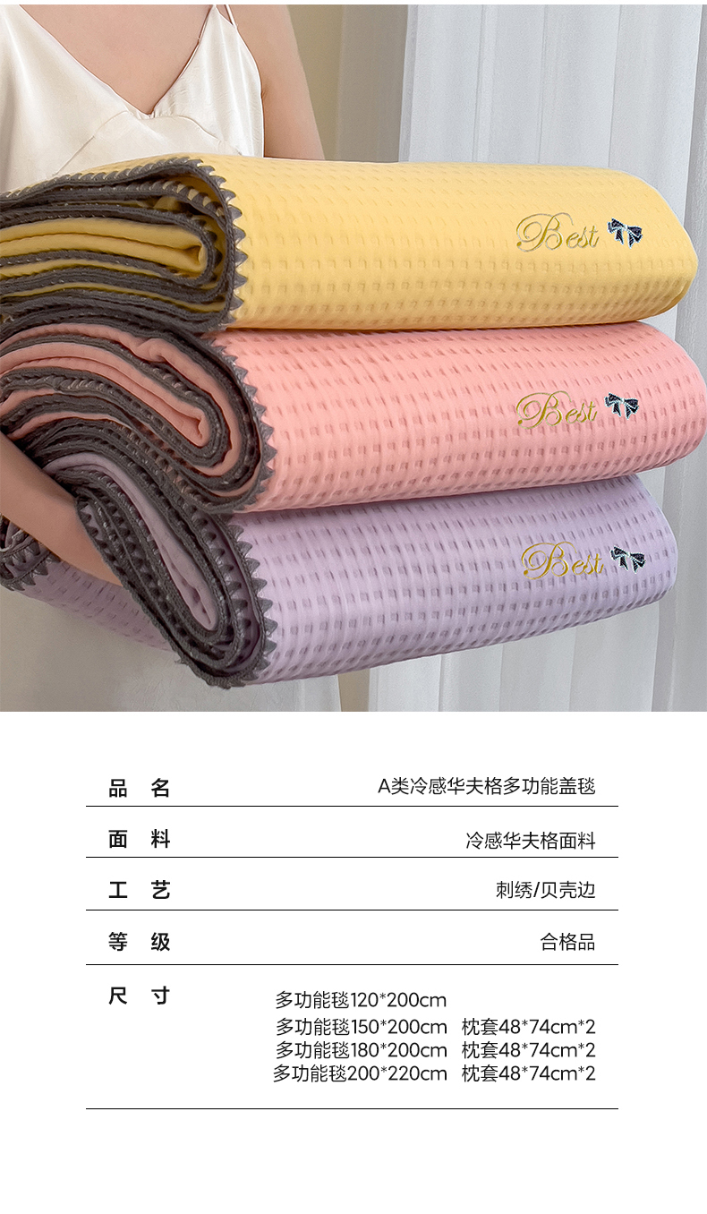(总)米菲 2025新款刺绣华夫格多功能毯盖毯毯子,组合图仅做展示,夏天-浅灰,夏天-抹茶绿,夏天-蜜桃,夏天-浅紫,夏天-嫩粉,夏天-米黄