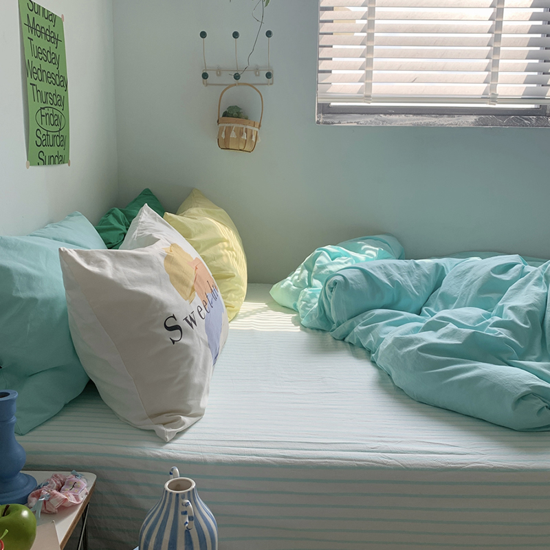 当前位置: 91家纺网 > 商品网购 > 床品套件 > 四件套 > (总)柚可家居 2024新款色织水洗棉四件套-冰激凌蓝条纹
