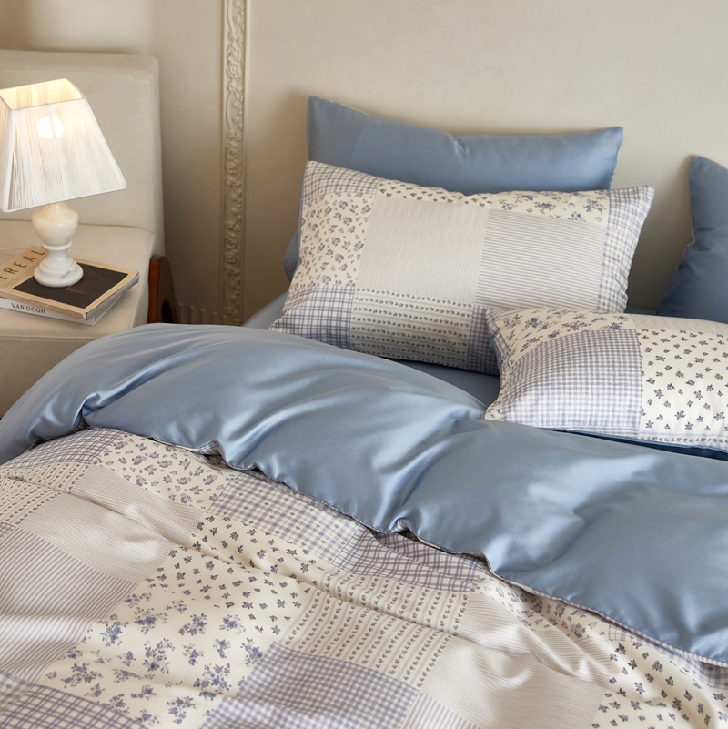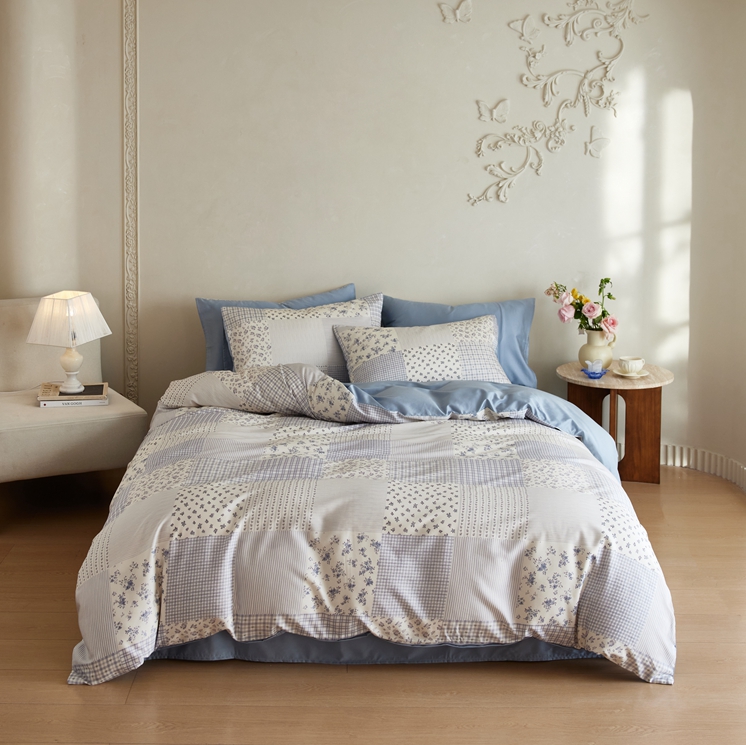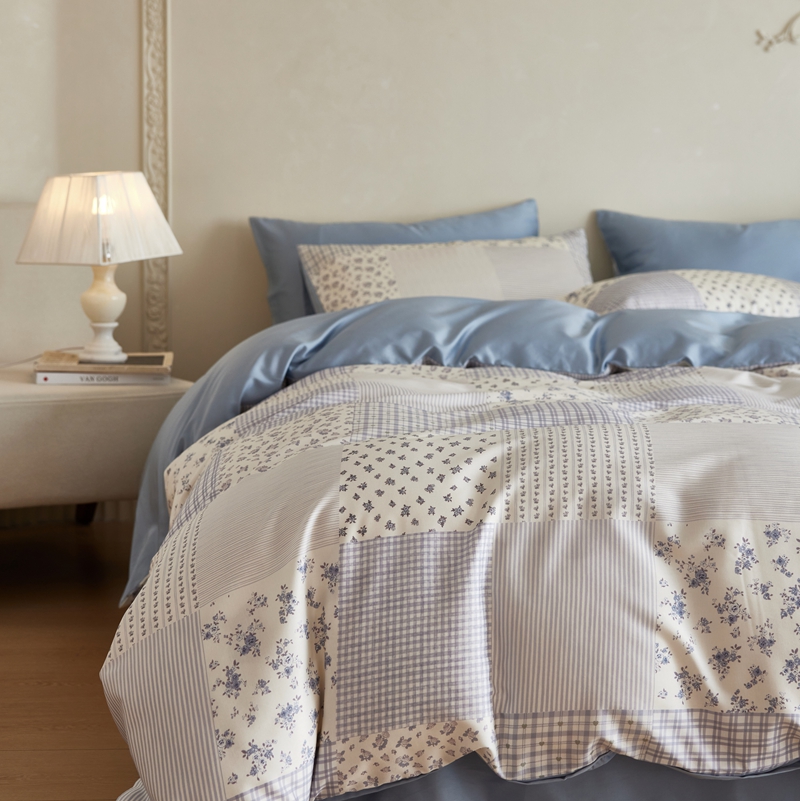 安莱生活2025春夏新款天丝棉四件套 百家布蓝