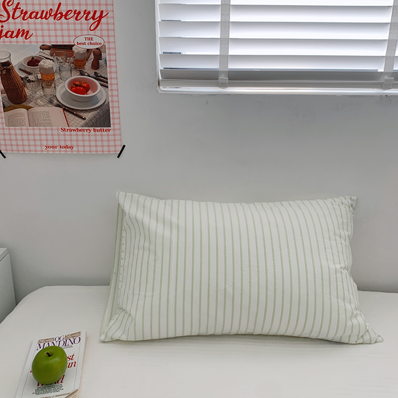 商品名称:柚可家居 2024新款水洗棉条纹系列单枕套-系列三 竖条蓝色