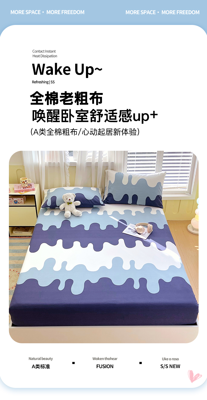 金鑫汇家纺 2025新款A类全棉老粗布床单床笠 老粗布·奶油蓝