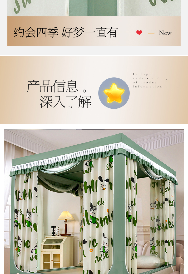 当前位置: 91家纺网 > 商品网购 > 床上用品 > 蚊帐 > 坐床式蚊帐 > 显高蚊帐 2025春夏新款U门花边款坐床遮光防尘床帘式蚊帐 春暖花开-花边款