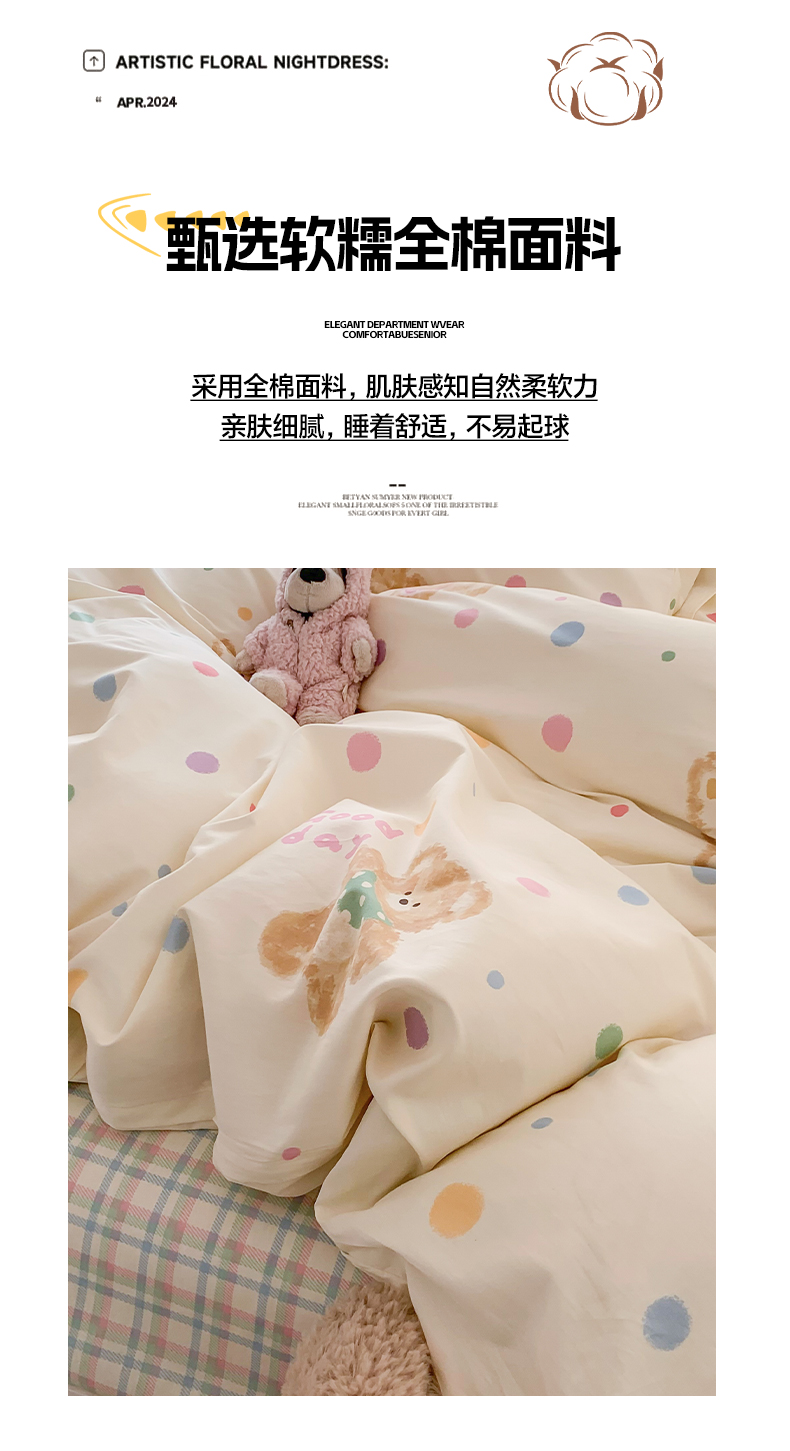 商品名称:爱丽丝2025新款全棉卡通印花四件套 奶油小熊