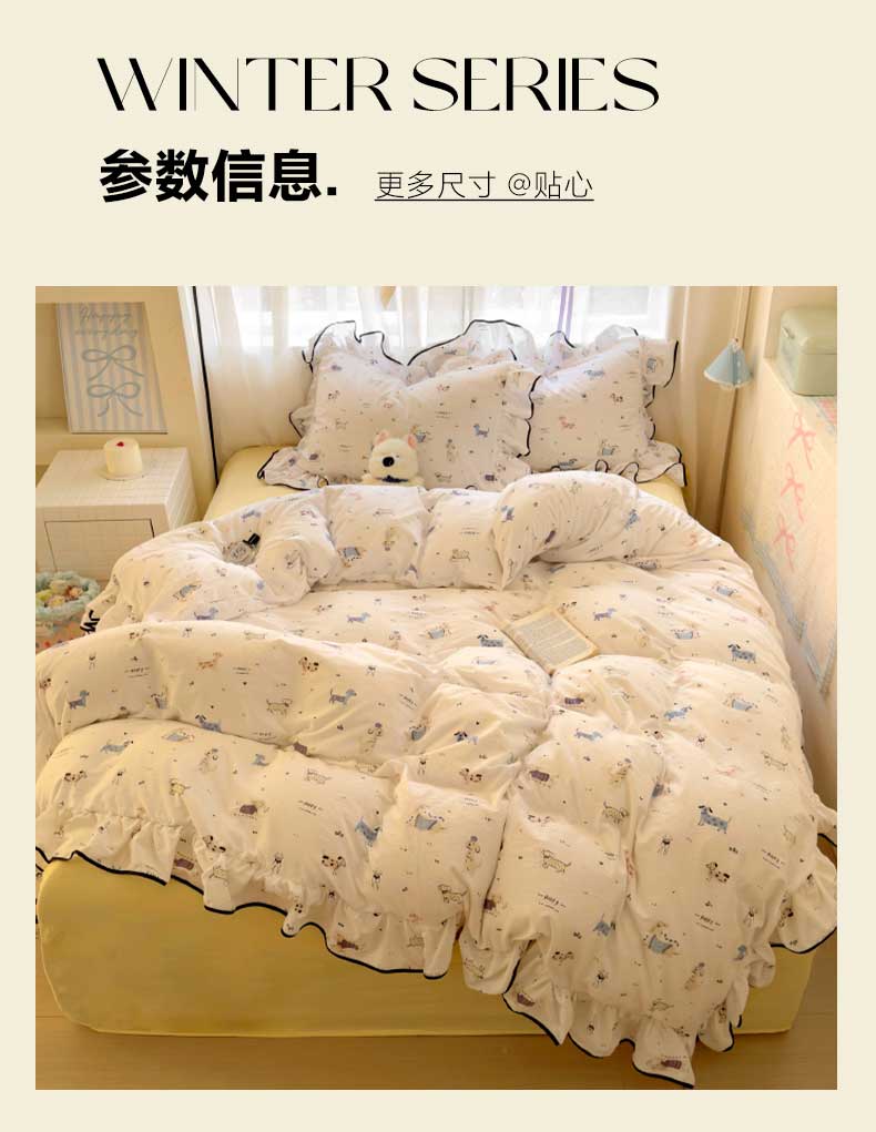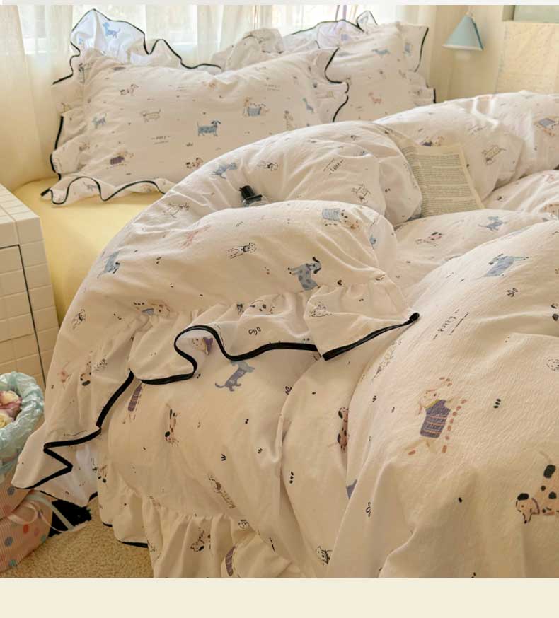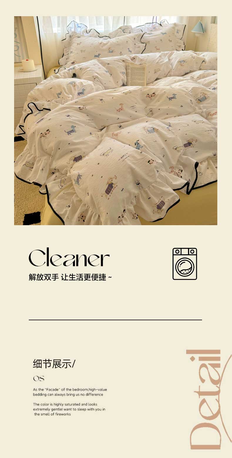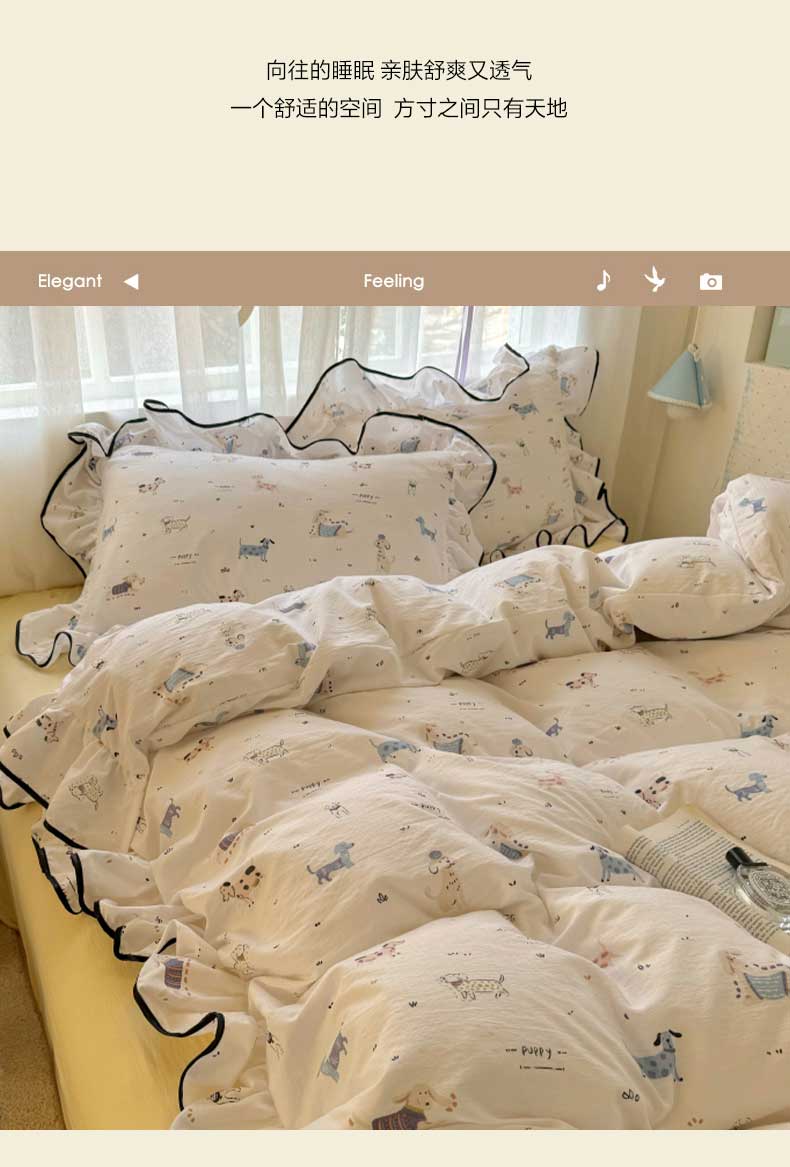 当前位置: 91家纺网 > 商品网购 > 床品套件 > 四件套 > 水洗棉四件套 > 繁花家居 2025春夏新款学生季韩式云感针织棉大花边木耳边四件套 汪汪乐园