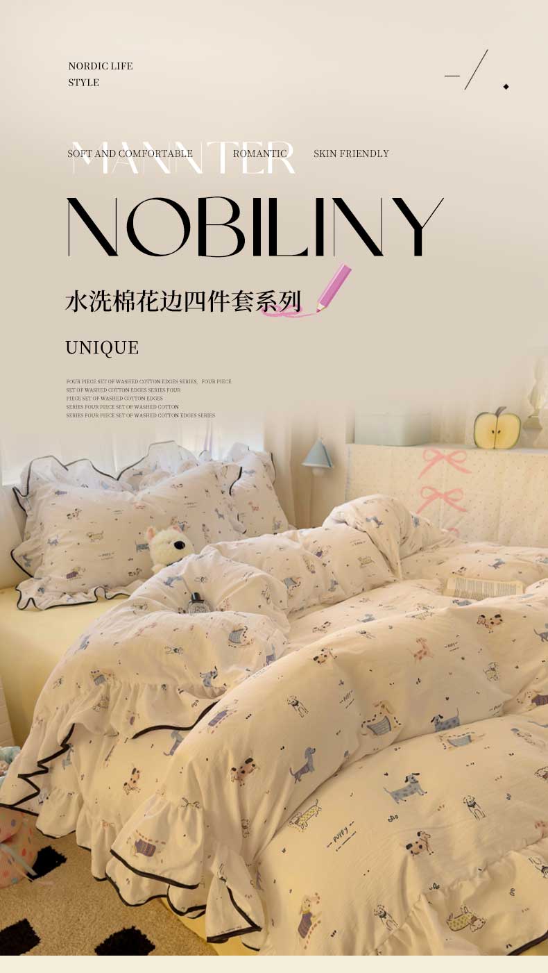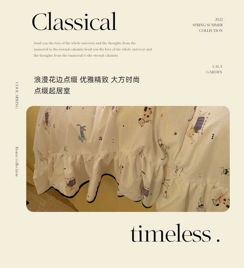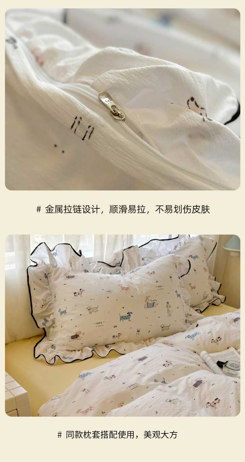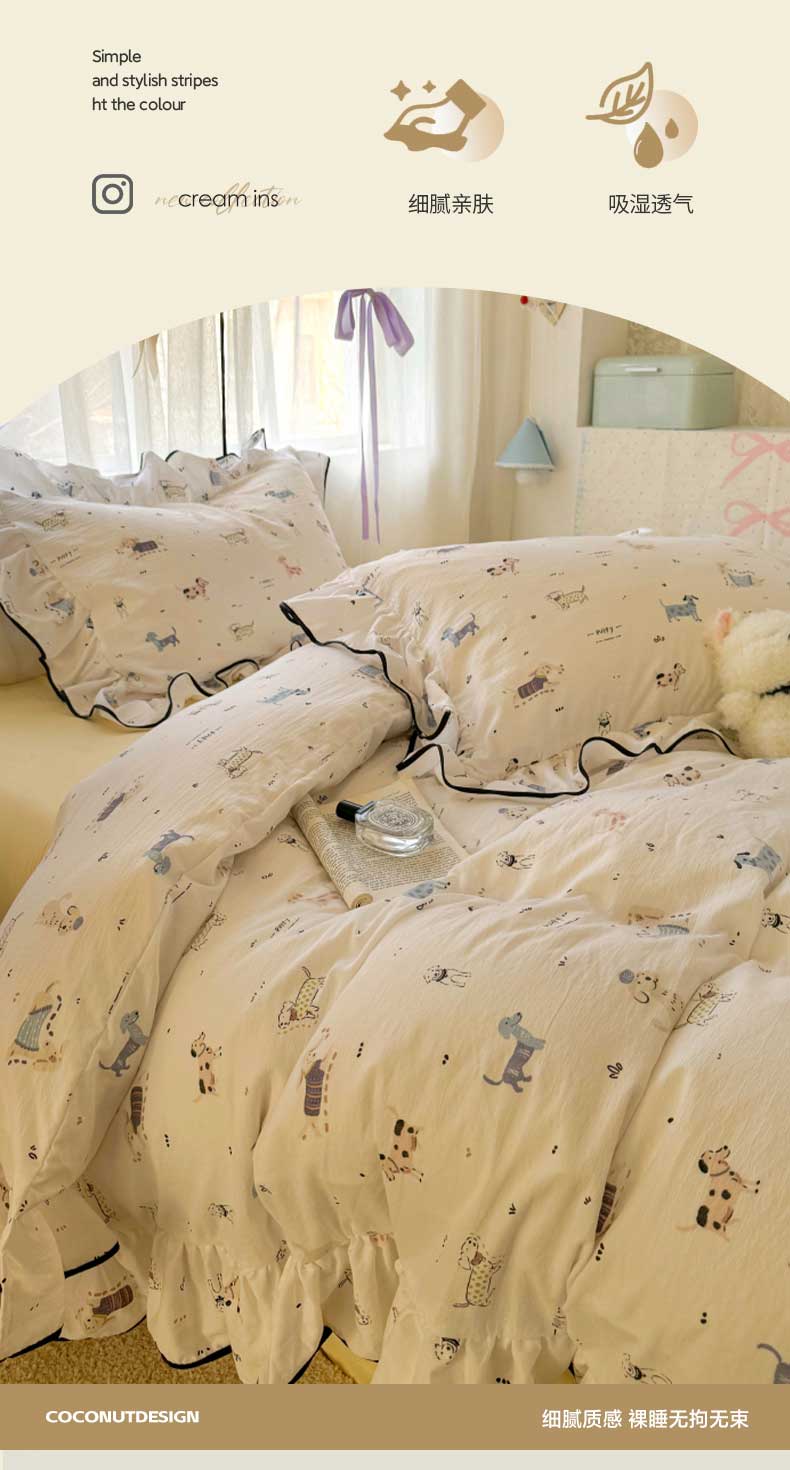 当前位置: 91家纺网 > 商品网购 > 床品套件 > 四件套 > 水洗棉四件套 > 繁花家居 2025春夏新款学生季韩式云感针织棉大花边木耳边四件套 汪汪乐园