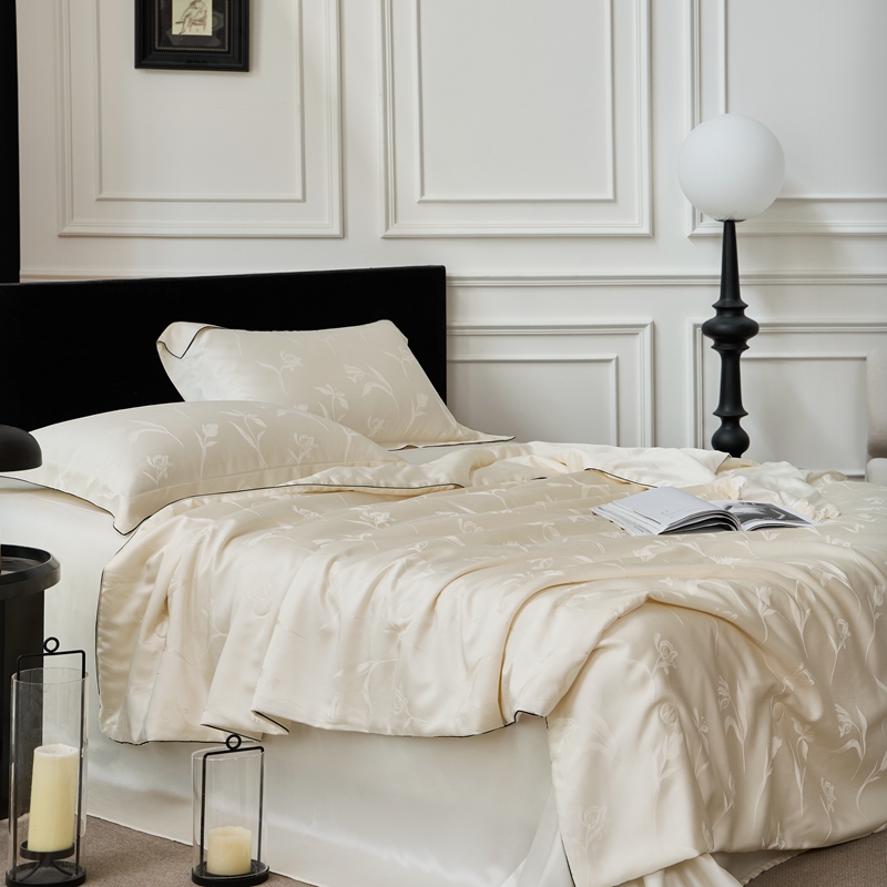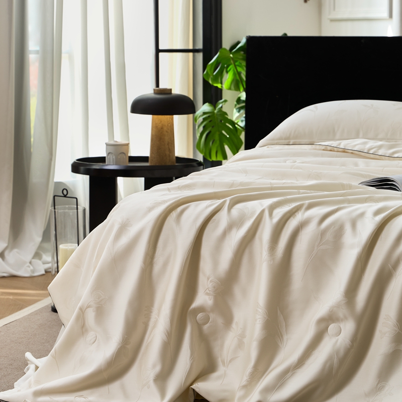 • 91家纺网 家纺一手货源 找家纺 涞澳家纺 2025新款天丝提花夏被 叶茂-白