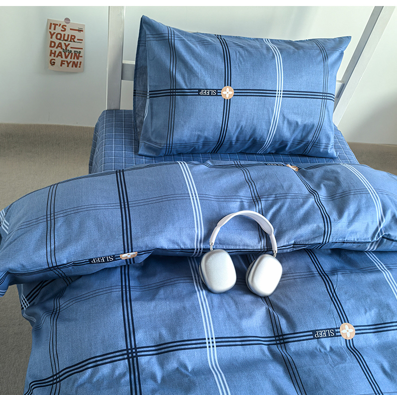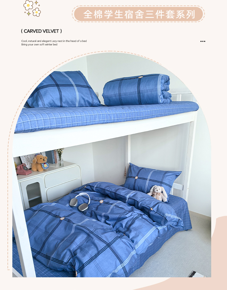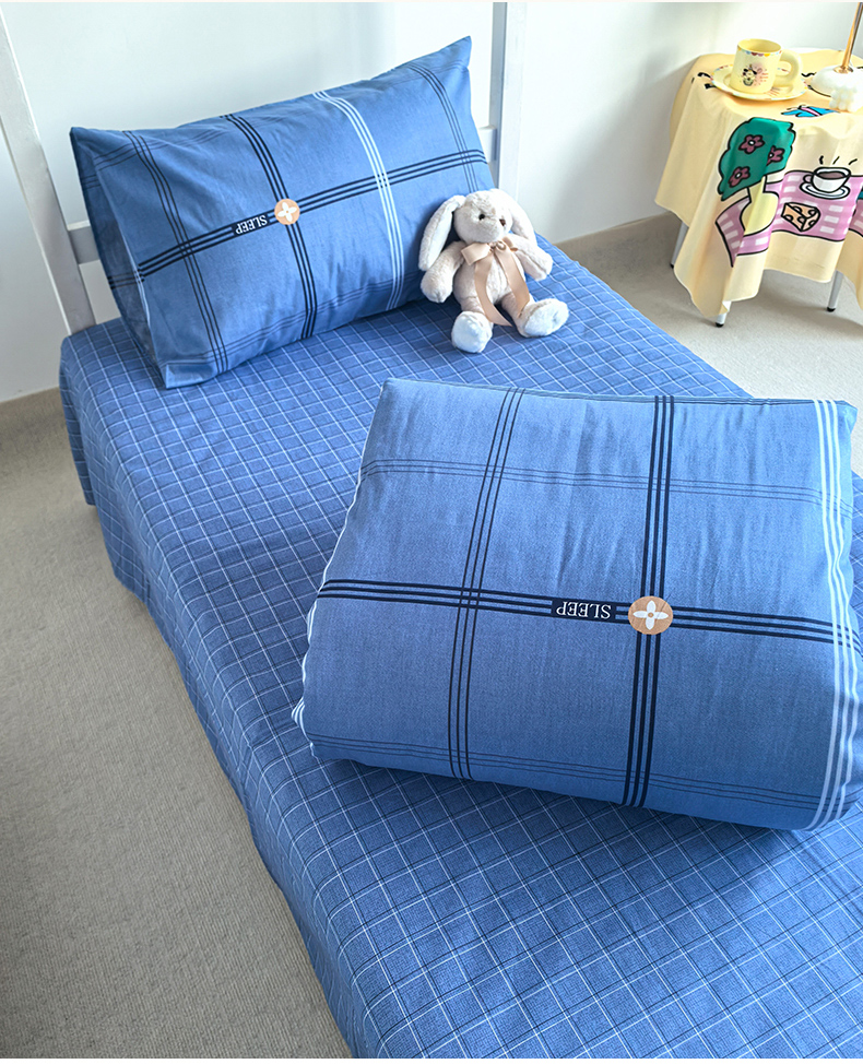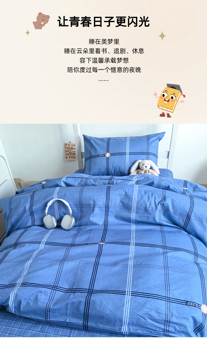 商品名称:锦彩家居 2025新款正宗13372全棉学生三件套全棉印花学生宿舍上下铺三件套(量大可定制价格可谈)提供买家秀 经典蓝格