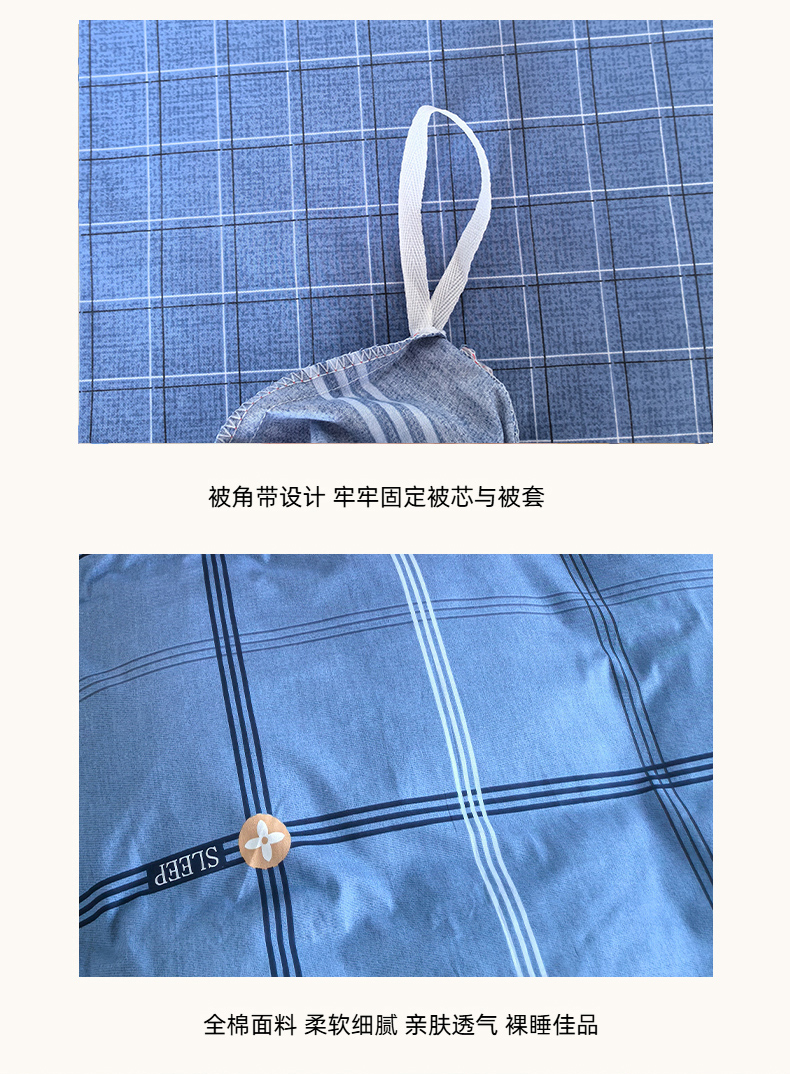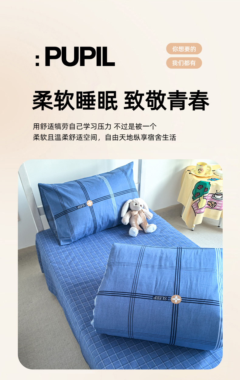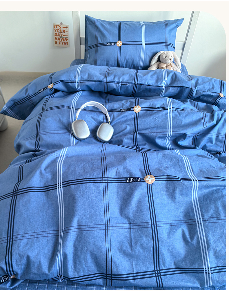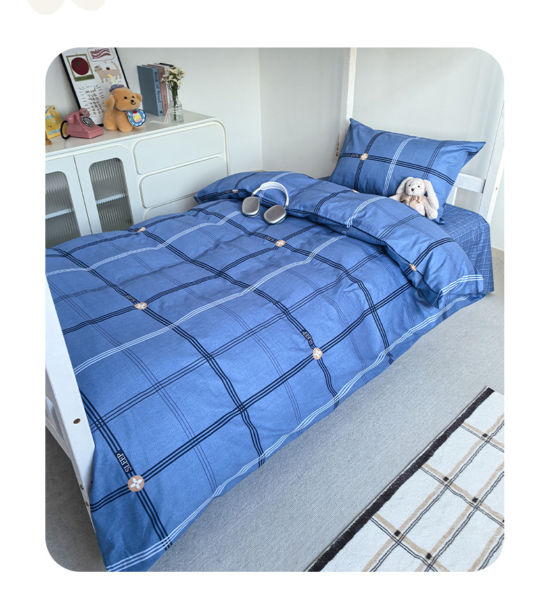 商品名称:锦彩家居 2025新款正宗13372全棉学生三件套全棉印花学生宿舍上下铺三件套(量大可定制价格可谈)提供买家秀 经典蓝格
