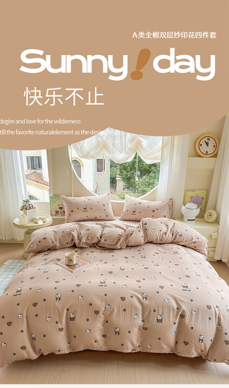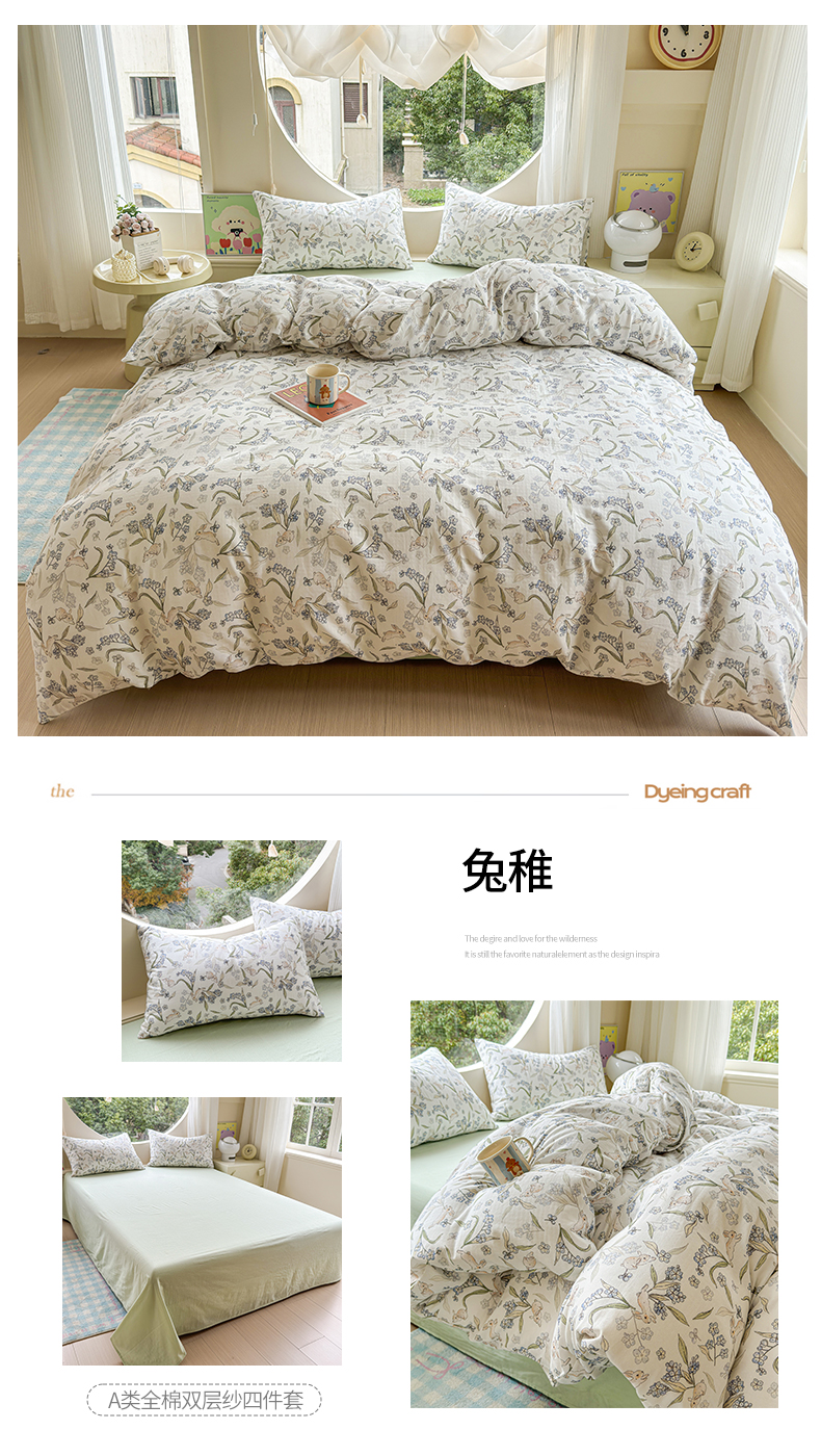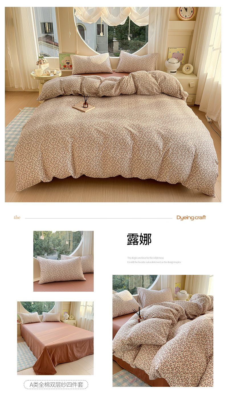 当前位置: 91家纺网 > 商品网购 > 床品套件 > 四件套 > 双层纱四件套 > 感遇家纺 2025新款全棉纯棉千柔双层纱四件套 露娜